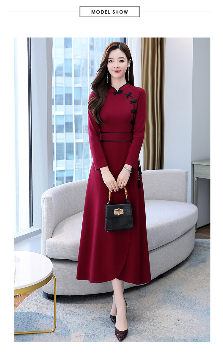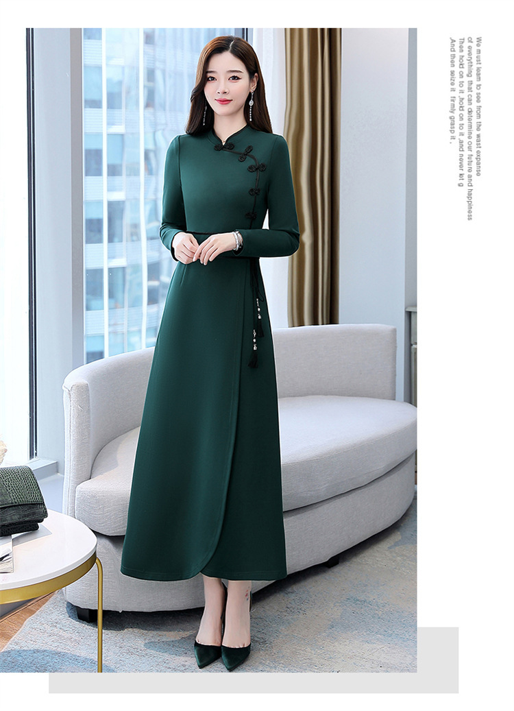 Chiếc đầm dành cho mẹ trong những dịp vui của gia đình. Kiểu dáng kín đáo với tay dài, phù hợp thời tiết mùa thu. Thiết kế ôm nhẹ cơ thể, tôn dáng người mặc. Chất vải mềm mại giúp bạn dễ chịu khi mặc trong suốt buổi tiệc. Sản phẩm dễ phối cùng các loại trang sức và giày có màu sắc tương đồng. Bạn có thể giặt nhẹ và phơi trong bóng mát để giữ form đầm được lâu. | Tên sản phẩm: Váy Đầm Liền Thân Nữ Dài Tay Hàng Mùa Xuân Thu Đông Trung Niên Dùng Trong Lễ Cưới Ngày Cưới - Thời Trang Nữ | Mã sản phẩm: K1245 - Giá: 1.680.000đ | Mã nhà sản xuất: WODTH-G05Hình ảnh sản phẩm