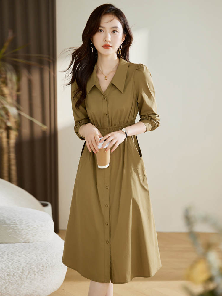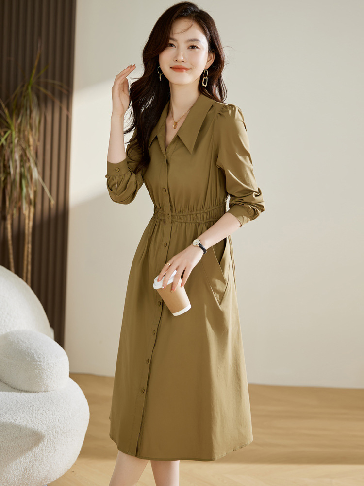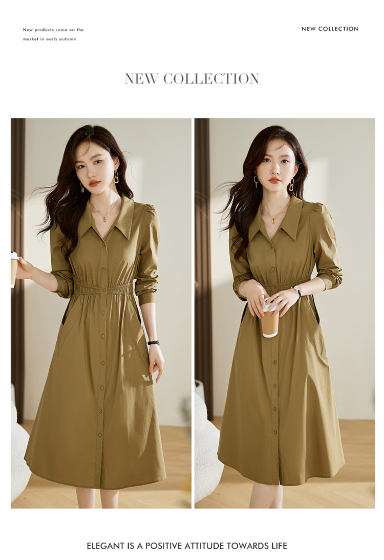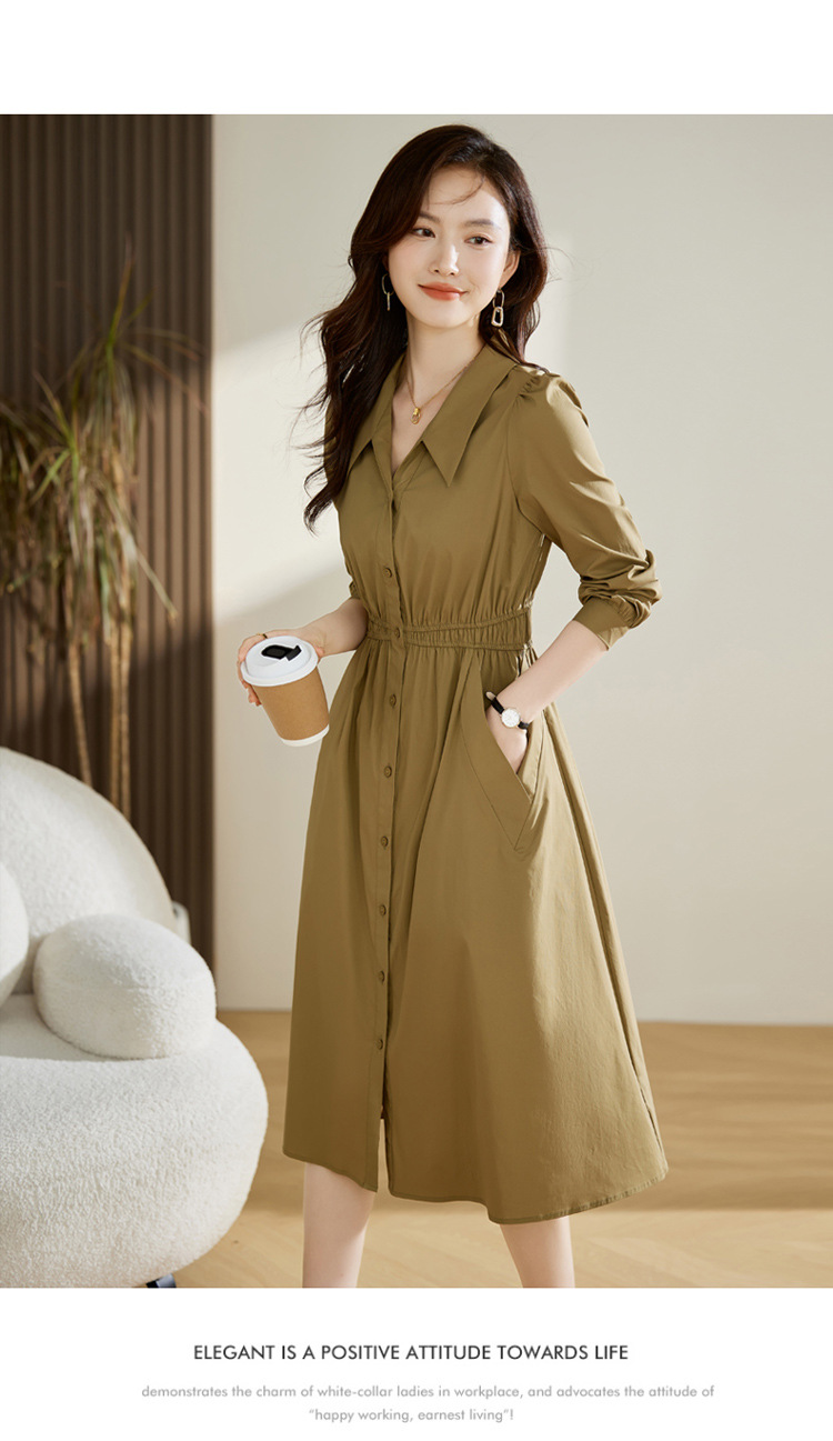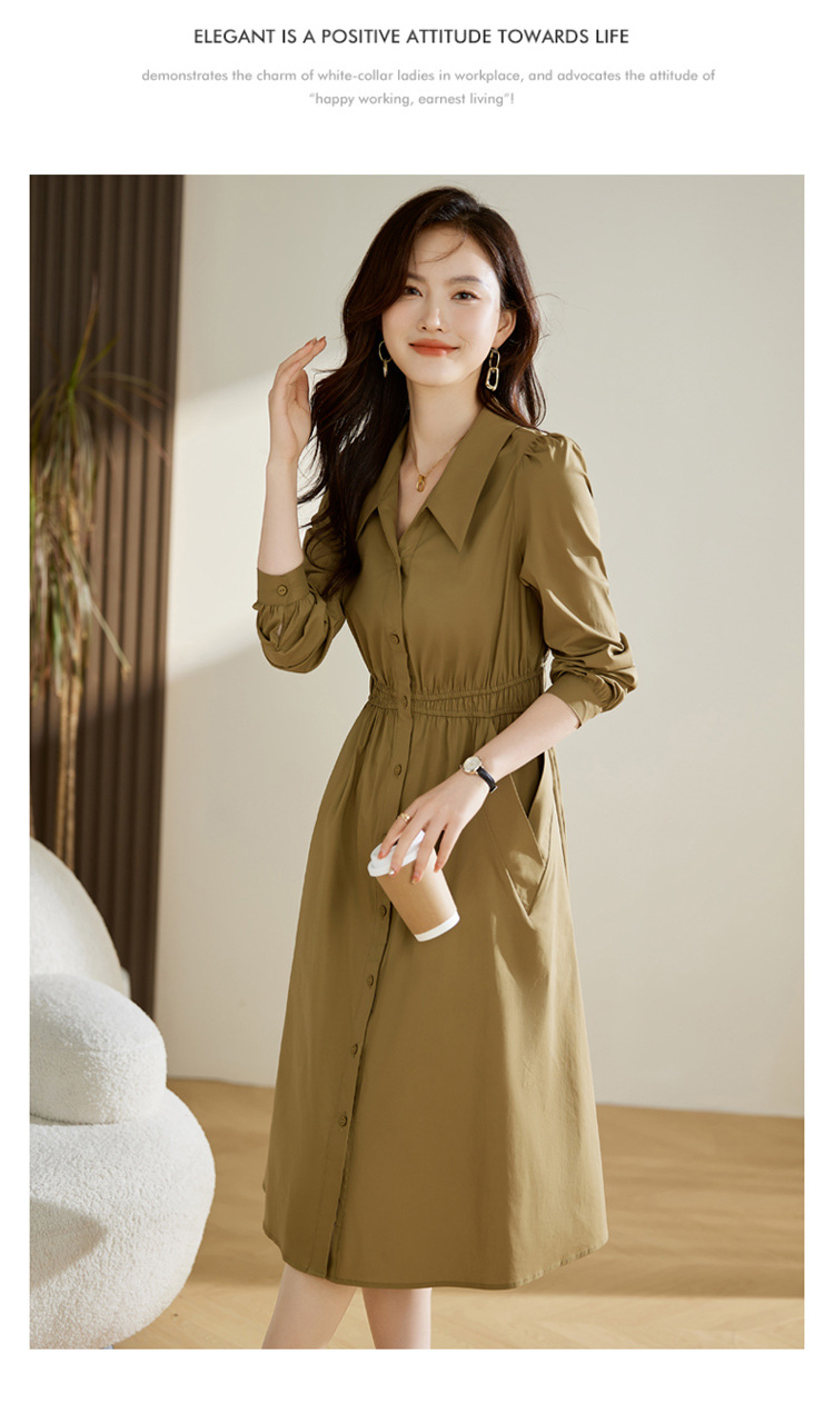 Chiếc đầm dáng dài tay phù hợp cho mùa xuân và thu. Thiết kế có cổ bẻ và hàng cúc đơn phía trước, tạo điểm nhấn thanh lịch. Điểm nổi bật là eo được may chiết li ô sát, giúp tôn lên vóc dáng một cách tự nhiên. Kiểu dáng đơn giản, màu trơn dễ dàng phối hợp với nhiều loại trang phục và phụ kiện khác nhau. Có thể mặc khi đi làm, đi chơi hoặc trong các dịp gặp mặt thường ngày. | Tên sản phẩm: Váy Đầm Liền Thân Nữ Dài Tay Kín Cổ Hàng Mùa Xuân Thu Đông - Thời Trang Nữ | Mã sản phẩm: K3833 - Giá: 1.490.000đ | Mã nhà sản xuất: HADG-G04Hình ảnh sản phẩm