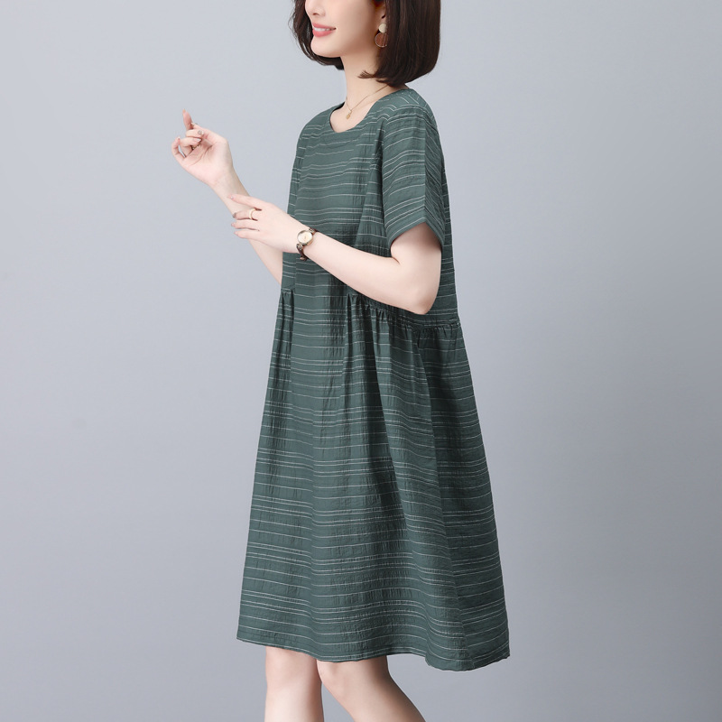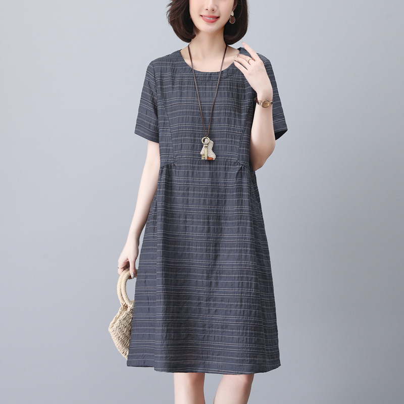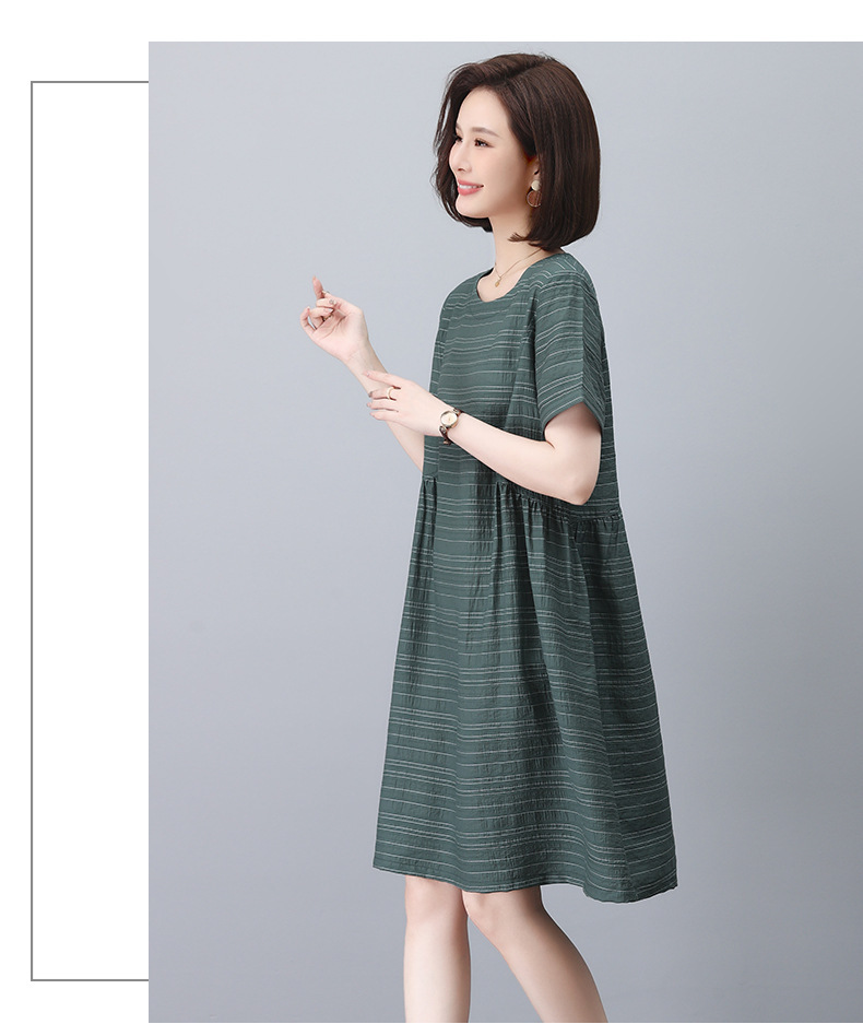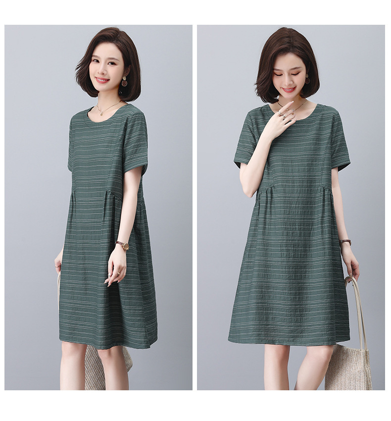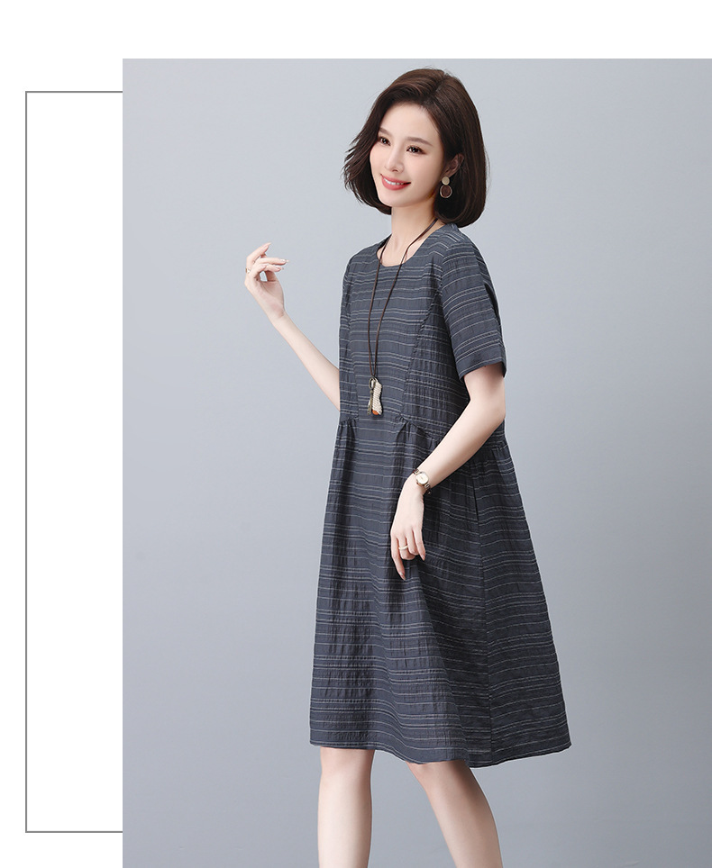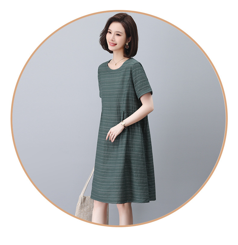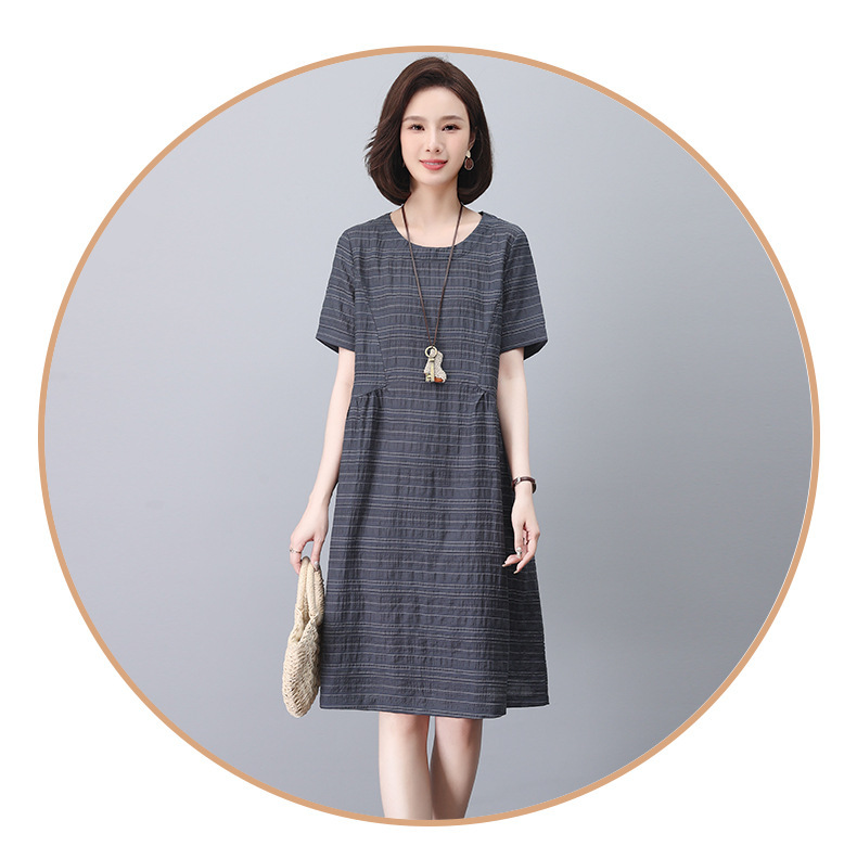 Chiếc đầm dáng dài với họa tiết sọc nổi bật, thiết kế dáng chữ A ôm vừa vặn giúp tôn dáng người mặc. Chất vải mềm mại, thoáng mát phù hợp cho những ngày hè oi bức. Sản phẩm mang phong cách nhẹ nhàng, tiện dụng cho nhiều dịp sinh hoạt thường ngày. Có thể phối cùng dép mỏng hoặc giày bệt để tạo vẻ ngoài năng động. Dễ dàng giặt bằng tay hoặc máy để giữ form vải lâu bền. | Tên sản phẩm: Váy Đầm Liền Thân Nữ Dáng Chữ A Hàng Mùa Hè Trung Niên - Thời Trang Nữ | Mã sản phẩm: L1200 - Giá: 1.300.000đ | Mã nhà sản xuất: WODTH-G04Hình ảnh sản phẩm