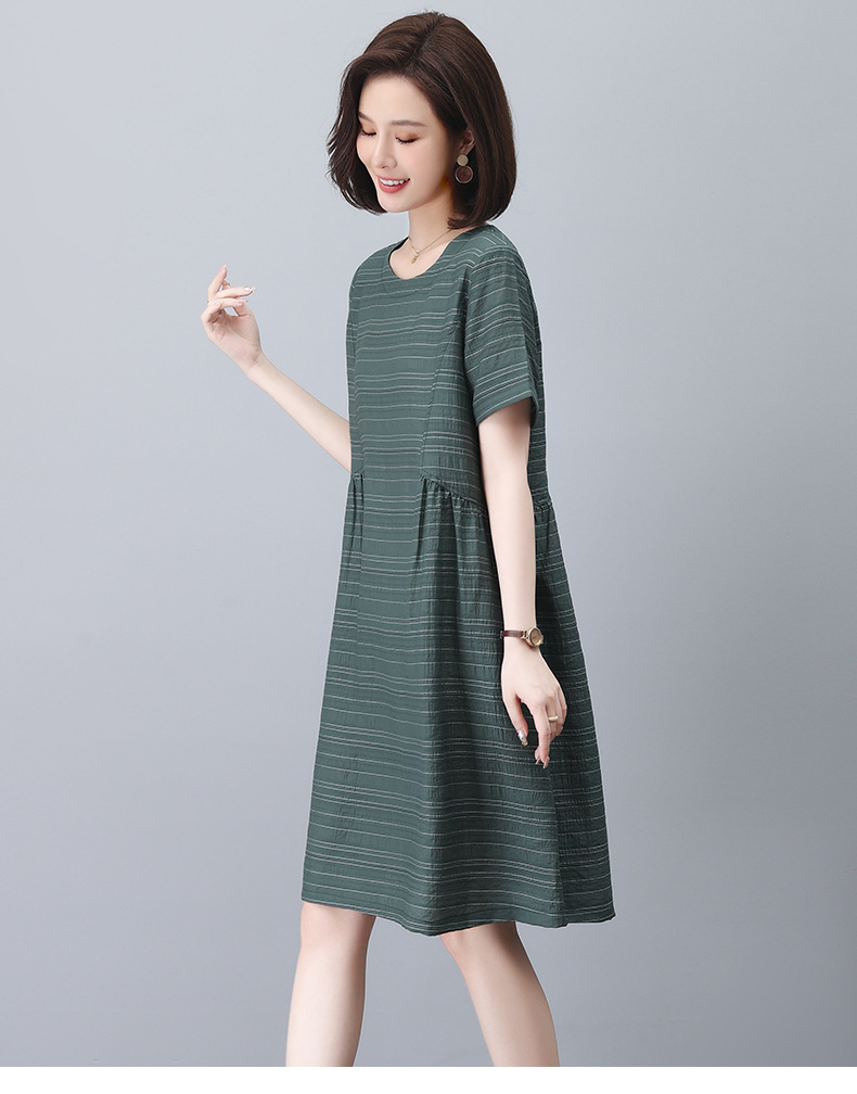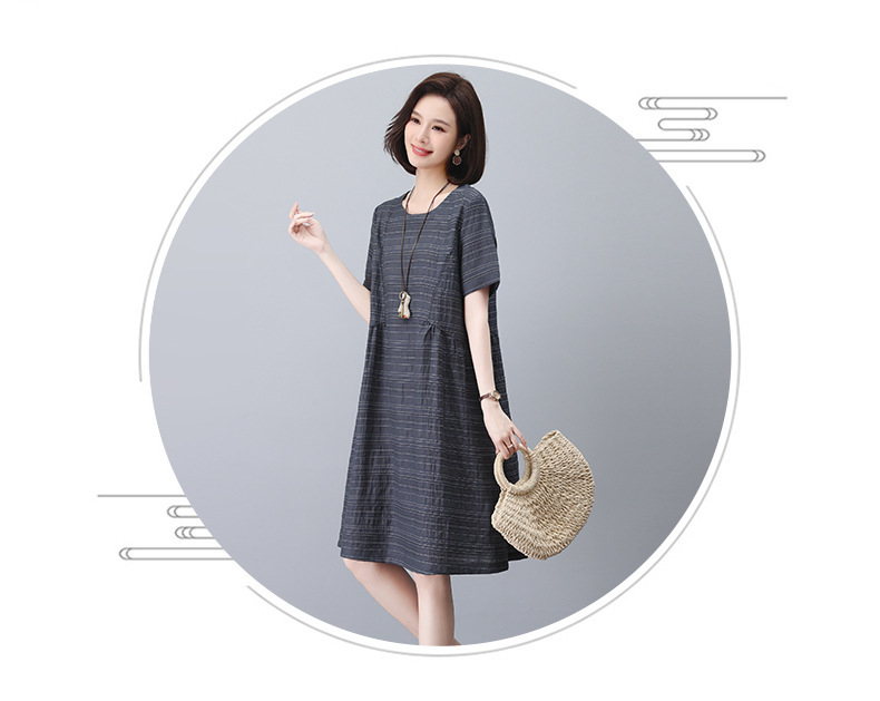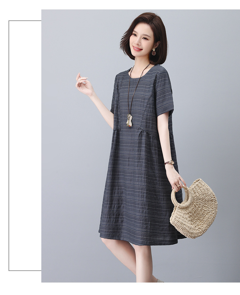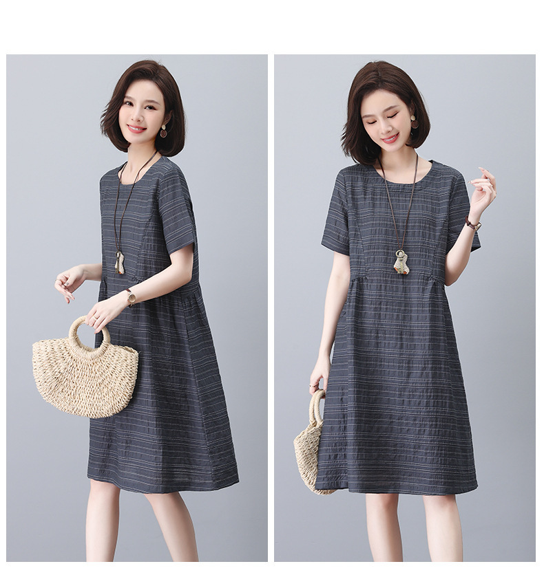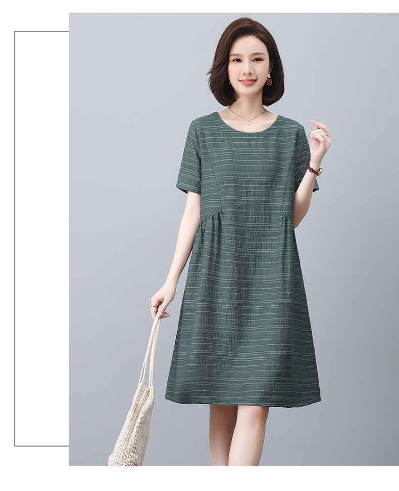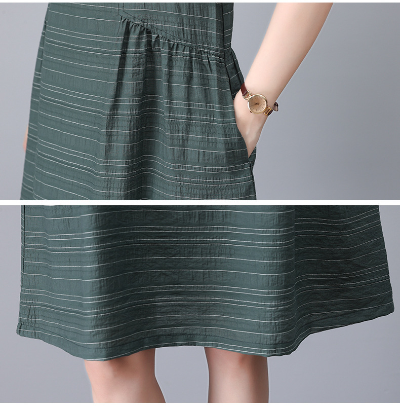 Chiếc đầm dáng dài với họa tiết sọc nổi bật, thiết kế dáng chữ A ôm vừa vặn giúp tôn dáng người mặc. Chất vải mềm mại, thoáng mát phù hợp cho những ngày hè oi bức. Sản phẩm mang phong cách nhẹ nhàng, tiện dụng cho nhiều dịp sinh hoạt thường ngày. Có thể phối cùng dép mỏng hoặc giày bệt để tạo vẻ ngoài năng động. Dễ dàng giặt bằng tay hoặc máy để giữ form vải lâu bền. | Tên sản phẩm: Váy Đầm Liền Thân Nữ Dáng Chữ A Hàng Mùa Hè Trung Niên - Thời Trang Nữ | Mã sản phẩm: L1200 - Giá: 1.300.000đ | Mã nhà sản xuất: WODTH-G04Hình ảnh sản phẩm