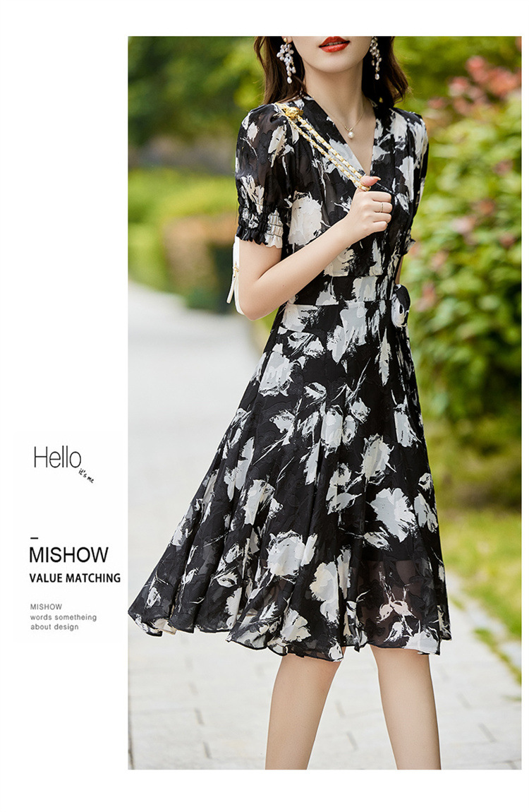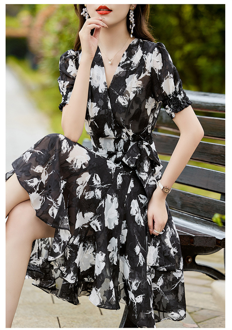 Váy ngắn tay phồng với họa tiết in tinh tế, mang đến vẻ ngoại hình thanh thoát và nhẹ nhàng. Thiết kế cổ chéo chữ V và phần eo ôm giúp tôn lên các đường nét cơ thể. Kiểu dáng chữ A từ thắt lưng tạo cảm giác dáng người thon gọn hơn. Sản phẩm phù hợp cho nhiều dịp đi chơi, dạo phố hay gặp gỡ bạn bè. Có thể phối cùng giày bệt hoặc giày có qu để hoàn thiện bộ trang phục. | Tên sản phẩm: Váy Đầm Liền Thân Nữ Dáng Chữ A Tay Phồng Họa Tiết Hoa Cổ Chữ V Hàng Mùa Hè - Thời Trang Nữ | Mã sản phẩm: K3520 - Giá: 1.390.000đ | Mã nhà sản xuất: HADG-G04Hình ảnh sản phẩm
