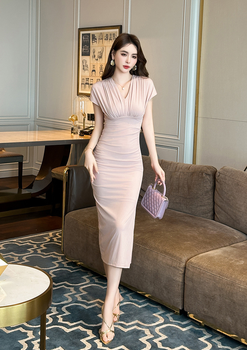 Đầm thiết kế kiểu Pháp với cổ chữ V tôn dáng. Form đầm ôm nhẹ giúp tôn lên những đường nét cơ thể một cách dịu dàng và nữ tính. Chất vải mềm mại, thoáng mát, thích hợp mặc trong mùa hè. Sản phẩm dễ dàng phối cùng giày cao gót và túi xách để tạo nên một set đồ hoàn chỉnh, phù hợp cho nhiều dịp đi chơi hoặc gặp mặt. | Tên sản phẩm: Váy Đầm Liền Thân Nữ Dáng Ôm Cổ Chữ V Hàng Mùa Hè - Thời Trang Nữ | Mã sản phẩm: K3511 - Giá: 1.050.000đ | Mã nhà sản xuất: CHDG-G03Hình ảnh sản phẩm