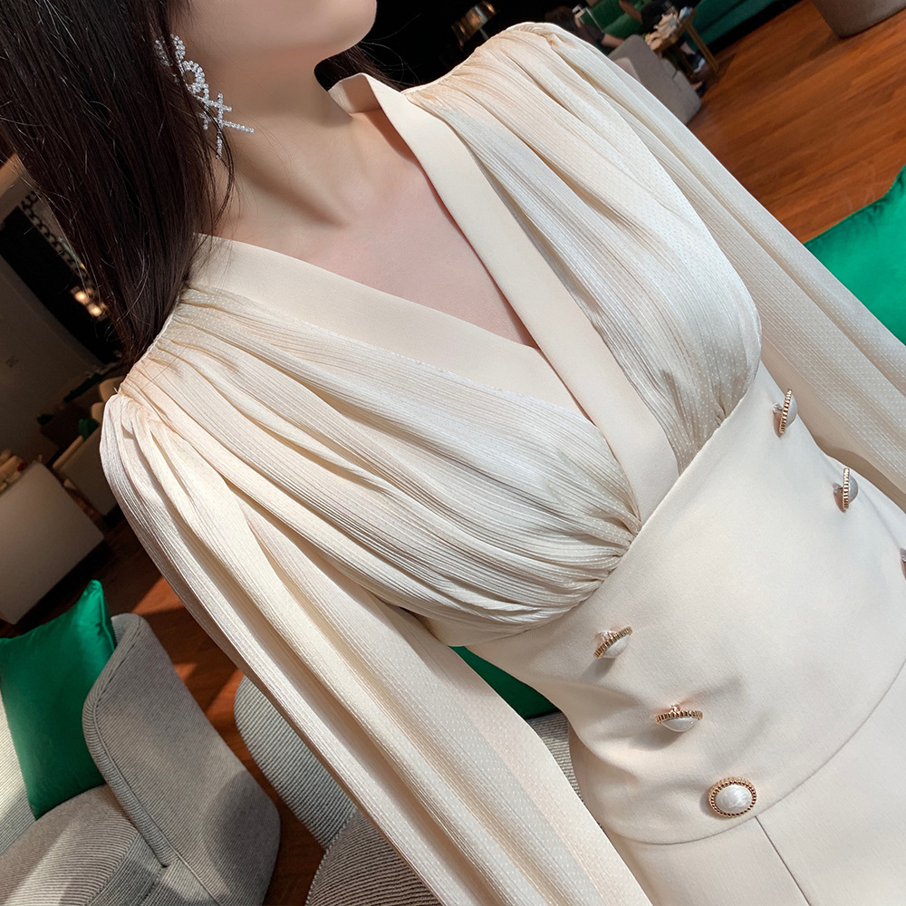 Chiếc đầm ôm dáng với cổ chữ V tôn vẻ thanh lịch, điểm nhấn là hàng khuy đôi tinh tế. Thiết kế này phù hợp cho những dịp cần sự nhẹ nhàng và nữ tính. Chất vải mềm mại giúp bạn dễ chịu khi mặc cả ngày. Sản phẩm phù hợp để đi làm hoặc dự những buổi gặp mặt. Bạn có thể phối cùng giày cao gót và túi xách nhỏ để hoàn thiện phong cách. | Tên sản phẩm: Váy Đầm Liền Thân Nữ Dáng Ôm Cổ Chữ V Hàng Mùa Xuân Thu Đông - Thời Trang Nữ | Mã sản phẩm: H4432 - Giá: 1.030.000đ | Mã nhà sản xuất: GUDG-G03Hình ảnh sản phẩm