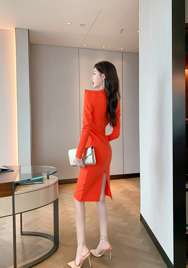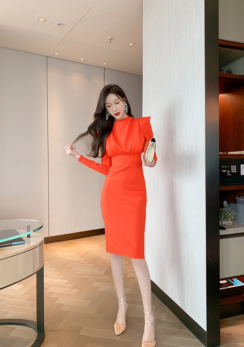 Chiếc đầm dáng ôm dành cho nữ, thiết kế cổ đứng và tay dài, tôn lên vẻ thanh lịch. Chất vải mềm mại, co giãn nhẹ mang lại sự thoải mái cho cả ngày dài. Điểm nhấn là sắc cam tươi tắn, phù hợp cho những dịp làm việc hay dạo phố. Bạn có thể phối cùng giày cao gót hoặc giày thể thao để tạo nên những phong cách khác nhau. | Tên sản phẩm: Váy Đầm Liền Thân Nữ Dáng Ôm Hàng Mùa Xuân Thu Đông - Thời Trang Nữ | Mã sản phẩm: B1347 - Giá: 1.030.000đ | Mã nhà sản xuất: CHDG-G03Hình ảnh sản phẩm
