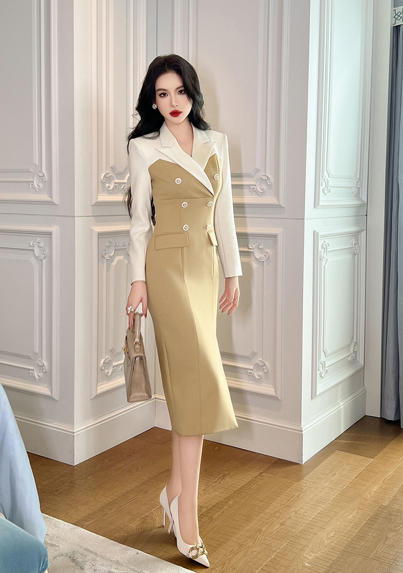 Chiếc váy dành cho nữ giới công sở vào mùa thu đông này có thiết kế ôm sáng tạo điểm nhấn là hàng khuy kép. Sản phẩm kết hợp các mảng màu tương phản một cách tinh tế, tôn lên nét thanh lịch. Kiểu dáng bó eo và xòe nhẹ ở phần gấu giúp tạo đường nét cơ thể hài hòa. Bạn có thể mặc nó đi làm hàng ngày, phối cùng giày cao gót và túi xách. Chất liệu vải co giãn nhẹ mang lại sự thoải mái cho cả ngày dài. | Tên sản phẩm: Váy Đầm Liền Thân Nữ Dáng Ôm Hàng Mùa Xuân Thu Đông Đồ Công Sở - Thời Trang Nữ | Mã sản phẩm: B0784 - Giá: 1.290.000đ | Mã nhà sản xuất: CHDG-G04Hình ảnh sản phẩm