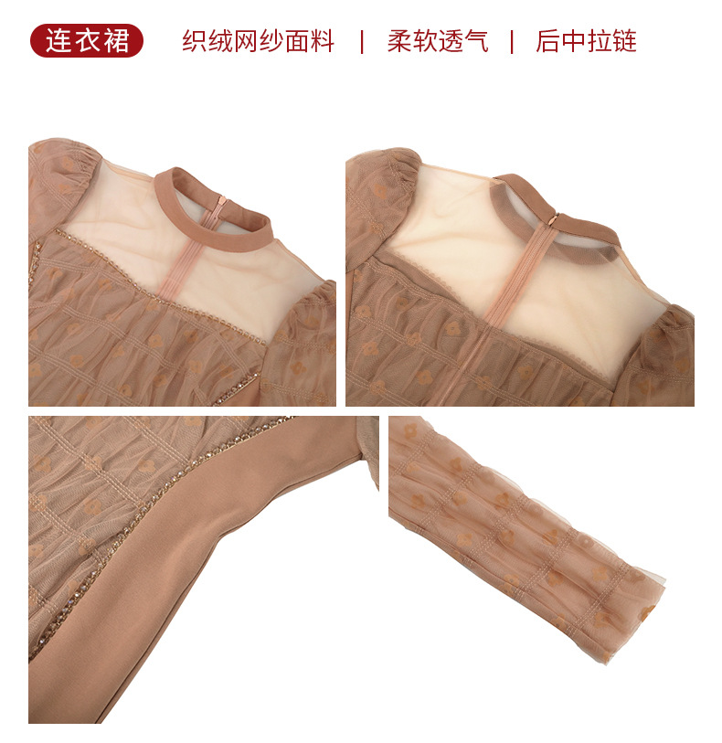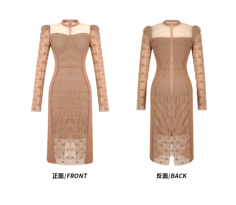 Chiếc đầm dành cho mùa thu đông này có thiết kế ôm sát tôn dáng. Chất liệu kết hợp giữa vải mềm mại và lớp voan mỏng tạo nên điểm nhấn đặc biệt. Các đường nhún xếp tỉ mỉ tăng thêm nét duyên dáng, phù hợp với nhiều dịp gặp mặt. Mặc cùng giày cao gót hoặc giày đế bằng đều hợp. Sản phẩm giúp người mặc thể hiện phong cách nhẹ nhàng, thanh lịch. | Tên sản phẩm: Váy Đầm Liền Thân Nữ Dáng Ôm Lưới Mỏng Hàng Mùa Xuân Thu Đông - Thời Trang Nữ | Mã sản phẩm: B2733 - Giá: 1.390.000đ | Mã nhà sản xuất: CHDG-G04Hình ảnh sản phẩm