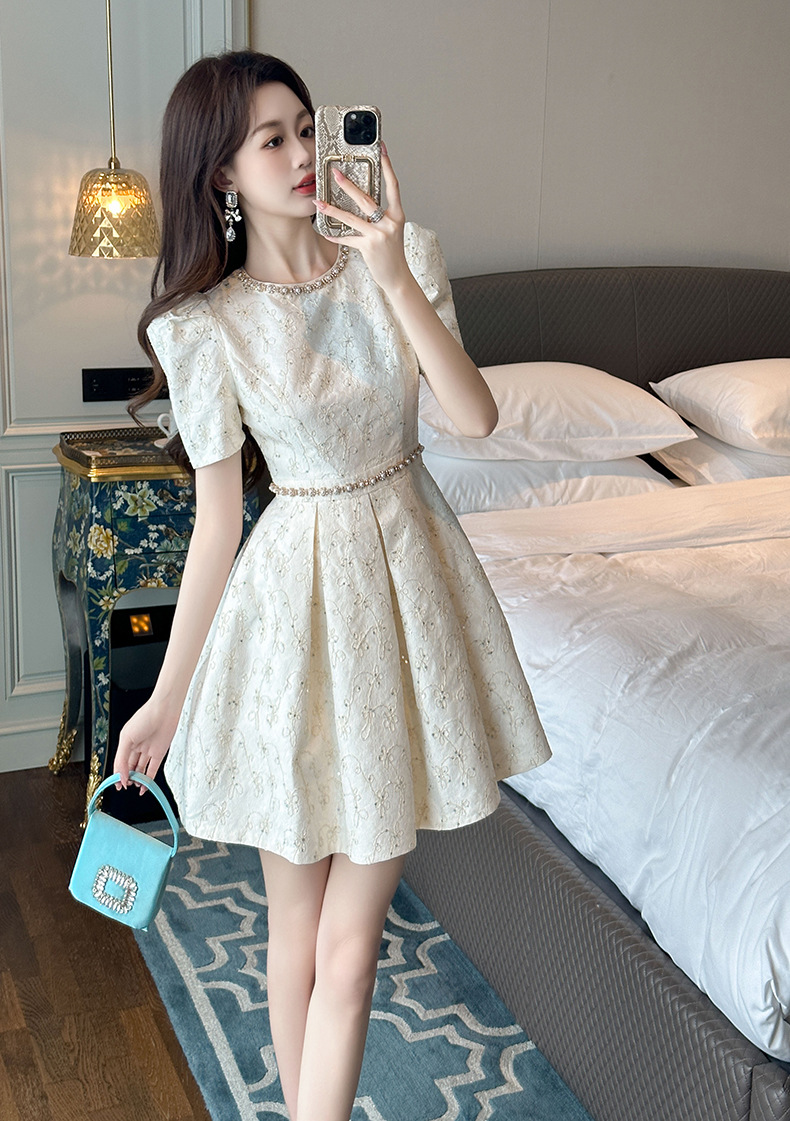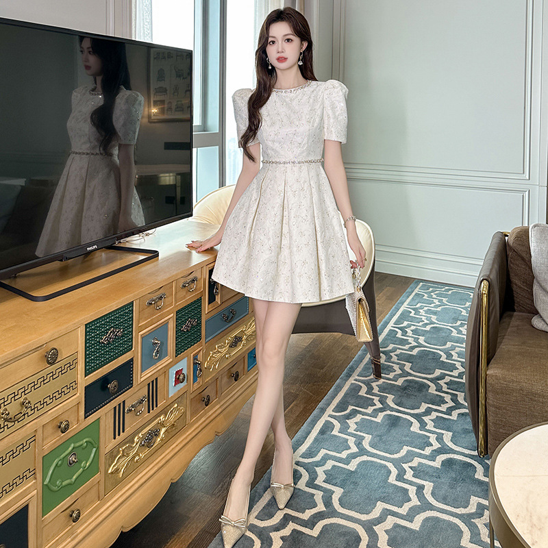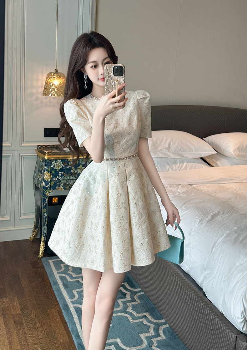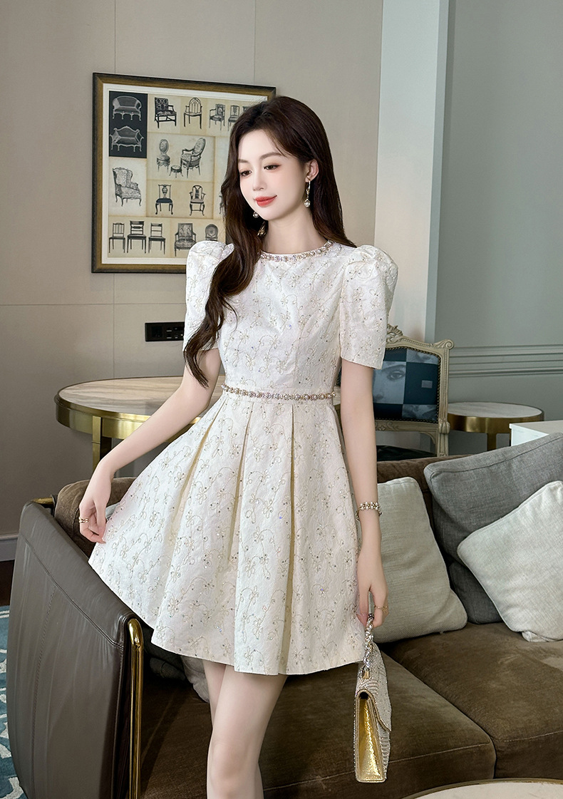 Đầm ngắn tay dành cho mùa hè, kiểu dáng chữ A với phần eo ôm nhẹ tôn dáng. Thiết kế có phần chân váy xòe nhẹ tạo vẻ điệu đà, nữ tính. Chất vải mềm mại, thoáng mát, dễ chịu khi mặc. Sản phẩm phù hợp để đi chơi, dạo phố hay tham dự các buổi gặp mặt. Có thể kết hợp cùng giày búp bê hoặc giày qu hậu để hoàn thiện bộ trang phục. | Tên sản phẩm: Váy Đầm Liền Thân Nữ Hàng Mùa Hè - Thời Trang Nữ | Mã sản phẩm: L2328 - Giá: 1.390.000đ | Mã nhà sản xuất: CHDG-G04Hình ảnh sản phẩm