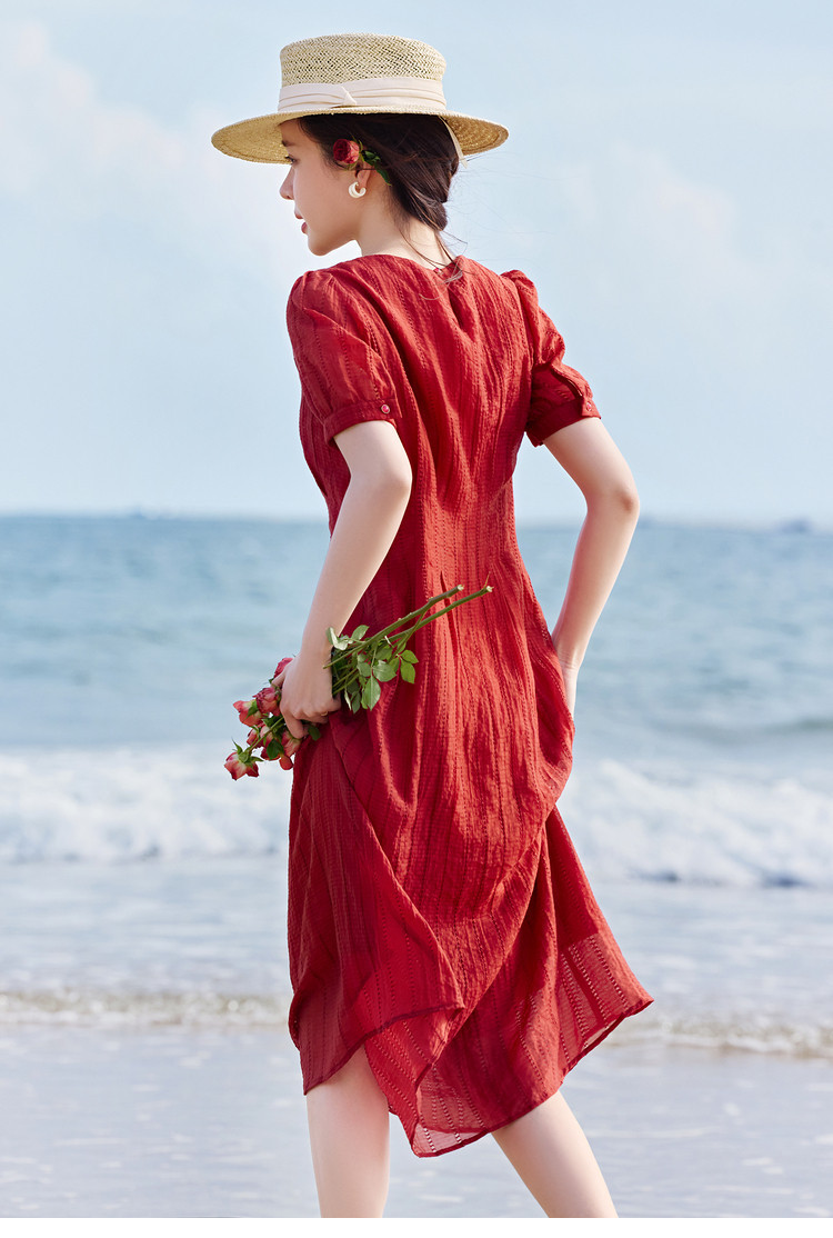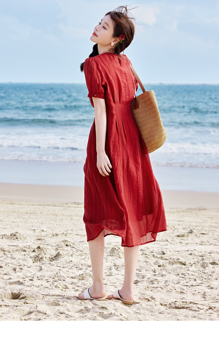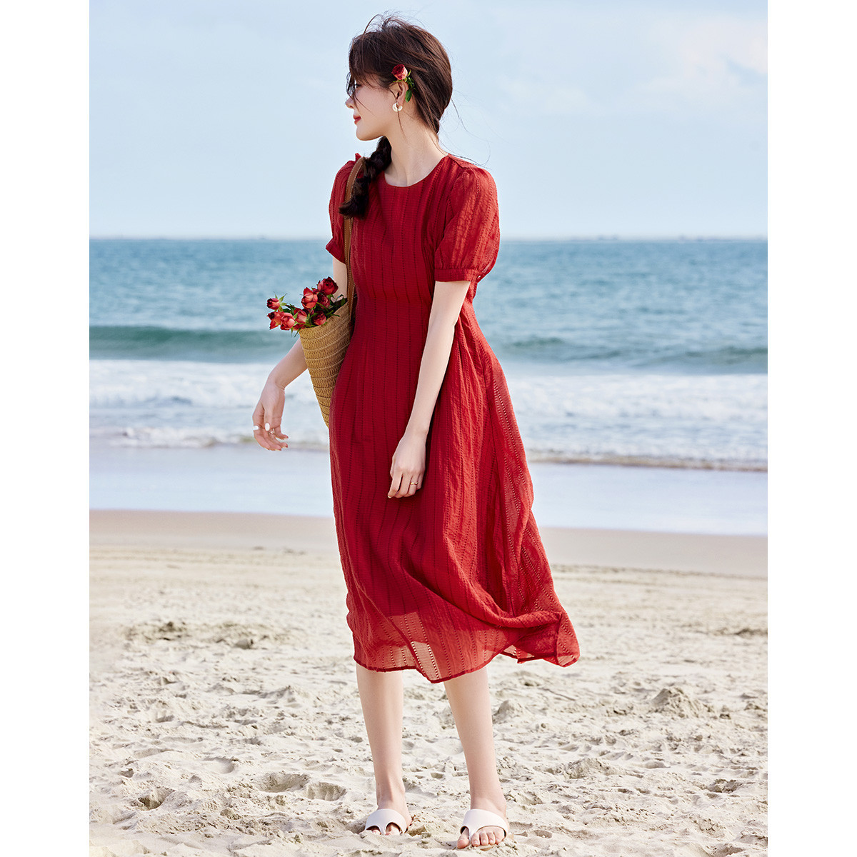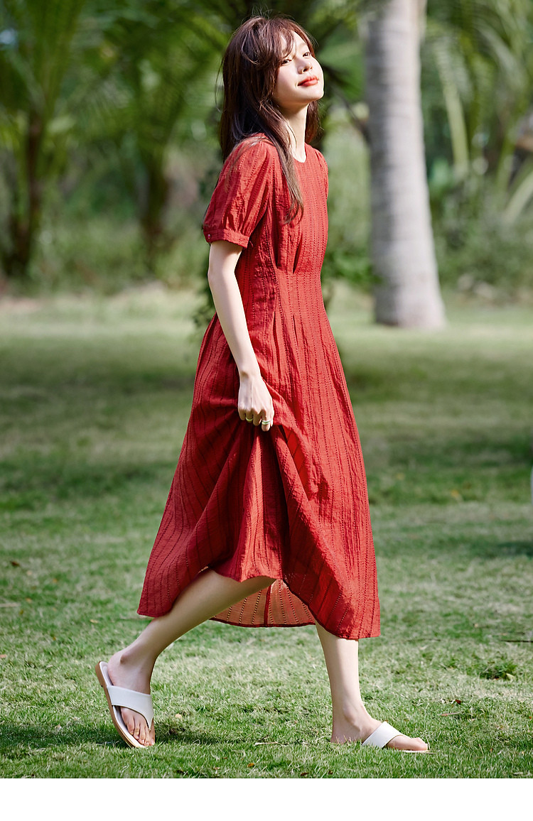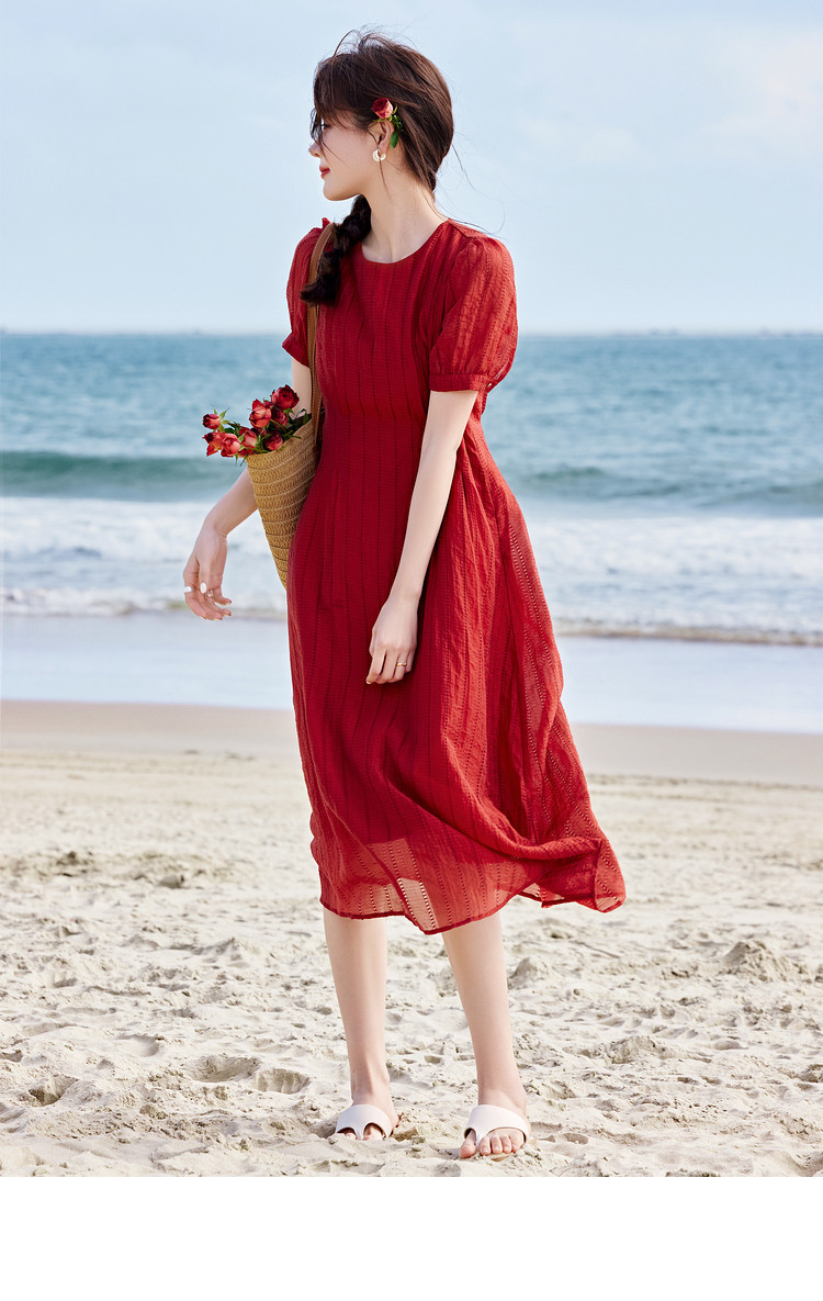 Chiếc đầm ôm eo này có chất vải mềm mại, tạo cảm giác dễ chịu như lụa tự nhiên. Thiết kế với các họa tiết thủng tỉ mỉ tạo nên vẻ đẹp tinh tế và có chiều sâu. Form đầm ôm nhẹ vào vòng eo, giúp tôn lên những đường nét cơ thể một cách dịu dàng. Sản phẩm phù hợp để mặc trong những dịp gặp mặt bạn bè hay dự các buổi tiệc nhẹ. Có thể giặt bằng tay và phơi ở nơi râm mát để giữ form vải được bền lâu. | Tên sản phẩm: Váy Đầm Liền Thân Nữ Hàng Mùa Hè - Thời Trang Nữ | Mã sản phẩm: K1553 - Giá: 630.000đ | Mã nhà sản xuất: SHREIA-G02Hình ảnh sản phẩm