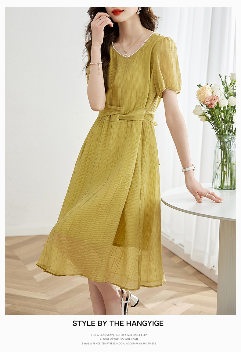 Chiếc đầm dành cho những cô nàng thích phong cách nhẹ nhàng. Chất vải dày dặn có đường vân tinh tế, tôn lên vẻ nữ tính. Thiết kế eo thắt đứng giúp tạo dáng thanh thoát, phù hợp cả với các bạn có chiều cao khiêm tốn. Kiểu dáng cổ V và tay ngắn mang đến sự thoải mái, dễ mặc cho những ngày hè. Có thể phối cùng giày bệt hoặc sandals để đi chơi, dạo phố. | Tên sản phẩm: Váy Đầm Liền Thân Nữ Hàng Mùa Hè - Thời Trang Nữ | Mã sản phẩm: L1188 - Giá: 1.480.000đ | Mã nhà sản xuất: WODTH-G04Hình ảnh sản phẩm