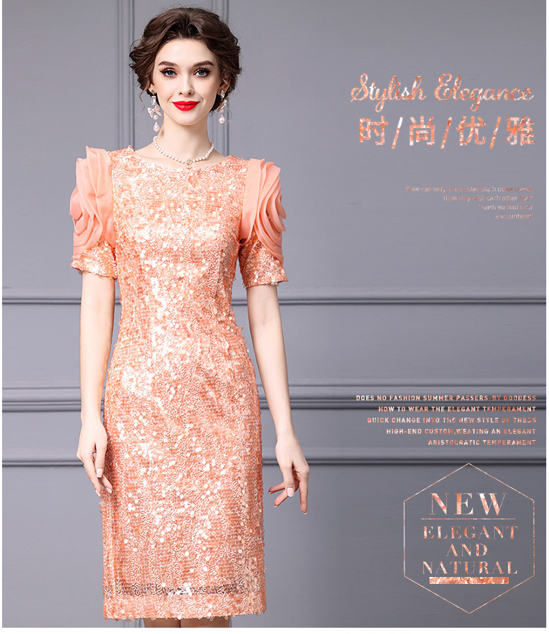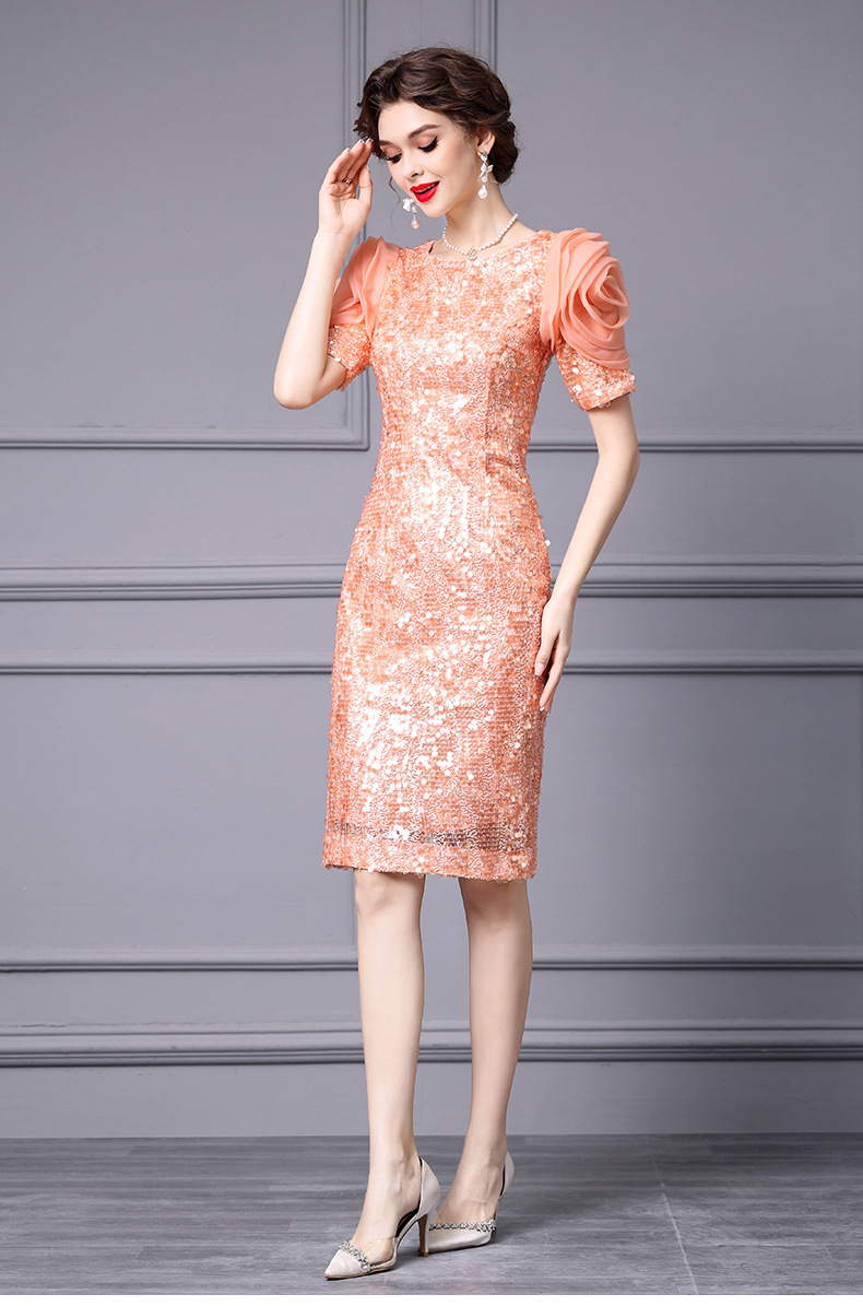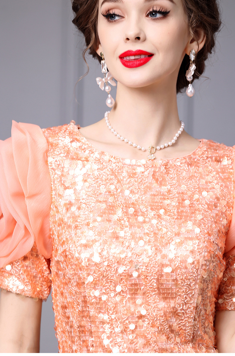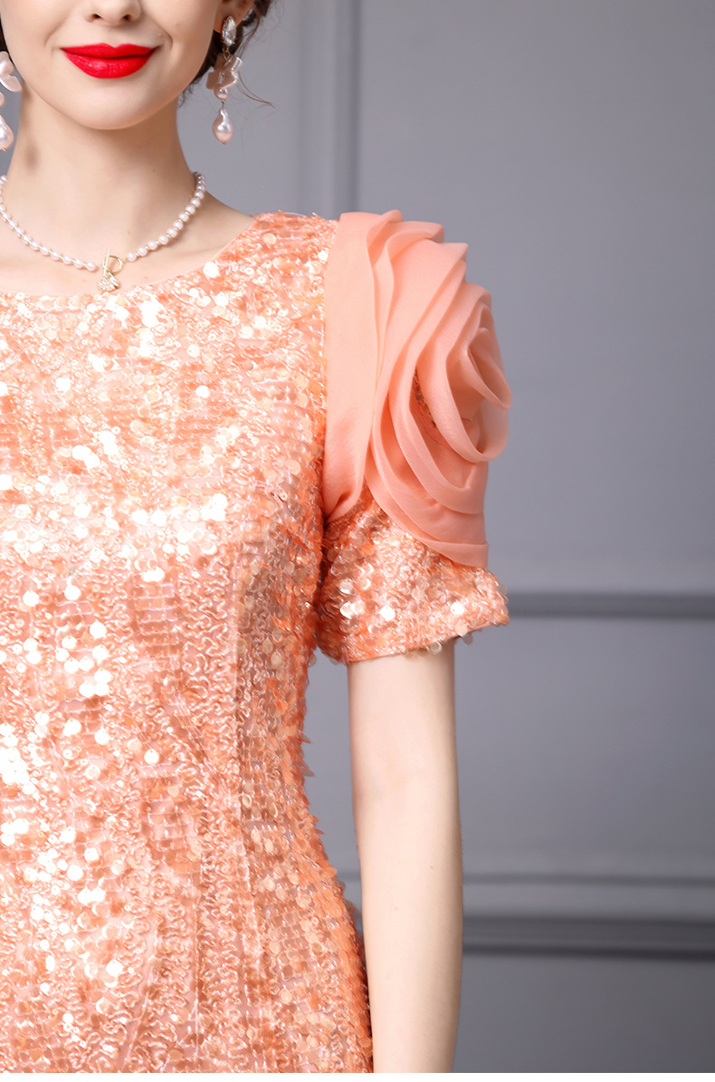 Chiếc đầm dáng ôm body này có điểm nhấn là những đường kim tuyến lấp lánh được thêu tỉ mỉ. Thiết kế cổ cao và eo ôm sát giúp tôn lên những đường nét cơ thể. Váy có màu cam tươi sáng, phù hợp cho những dịp dạo phố hoặc gặp gỡ bạn bè vào mùa xuân. Cách sử dụng đơn giản, bạn chỉ cần mặc vào và kéo khóa là đã có một vẻ ngoài ấn tượng. | Tên sản phẩm: Váy Đầm Liền Thân Nữ Hàng Mùa Xuân Thu Đông - Thời Trang Nữ | Mã sản phẩm: K0718 - Giá: 3.560.000đ | Mã nhà sản xuất: SHDAP-G06Hình ảnh sản phẩm