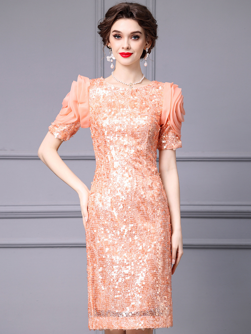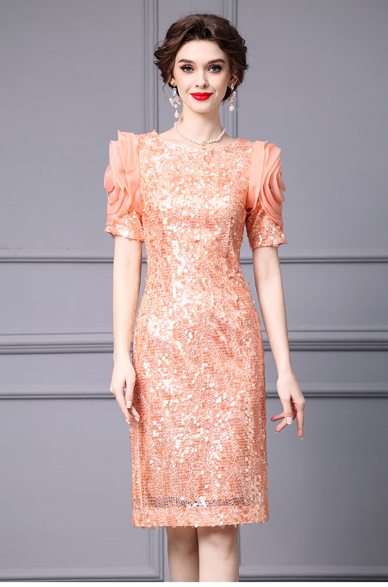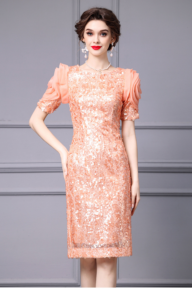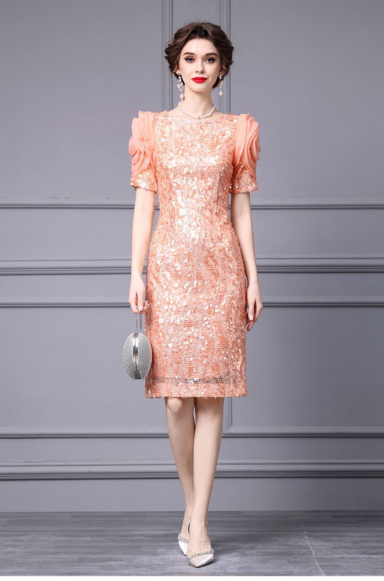 Chiếc đầm dáng ôm body này có điểm nhấn là những đường kim tuyến lấp lánh được thêu tỉ mỉ. Thiết kế cổ cao và eo ôm sát giúp tôn lên những đường nét cơ thể. Váy có màu cam tươi sáng, phù hợp cho những dịp dạo phố hoặc gặp gỡ bạn bè vào mùa xuân. Cách sử dụng đơn giản, bạn chỉ cần mặc vào và kéo khóa là đã có một vẻ ngoài ấn tượng. | Tên sản phẩm: Váy Đầm Liền Thân Nữ Hàng Mùa Xuân Thu Đông - Thời Trang Nữ | Mã sản phẩm: K0718 - Giá: 3.560.000đ | Mã nhà sản xuất: SHDAP-G06Hình ảnh sản phẩm