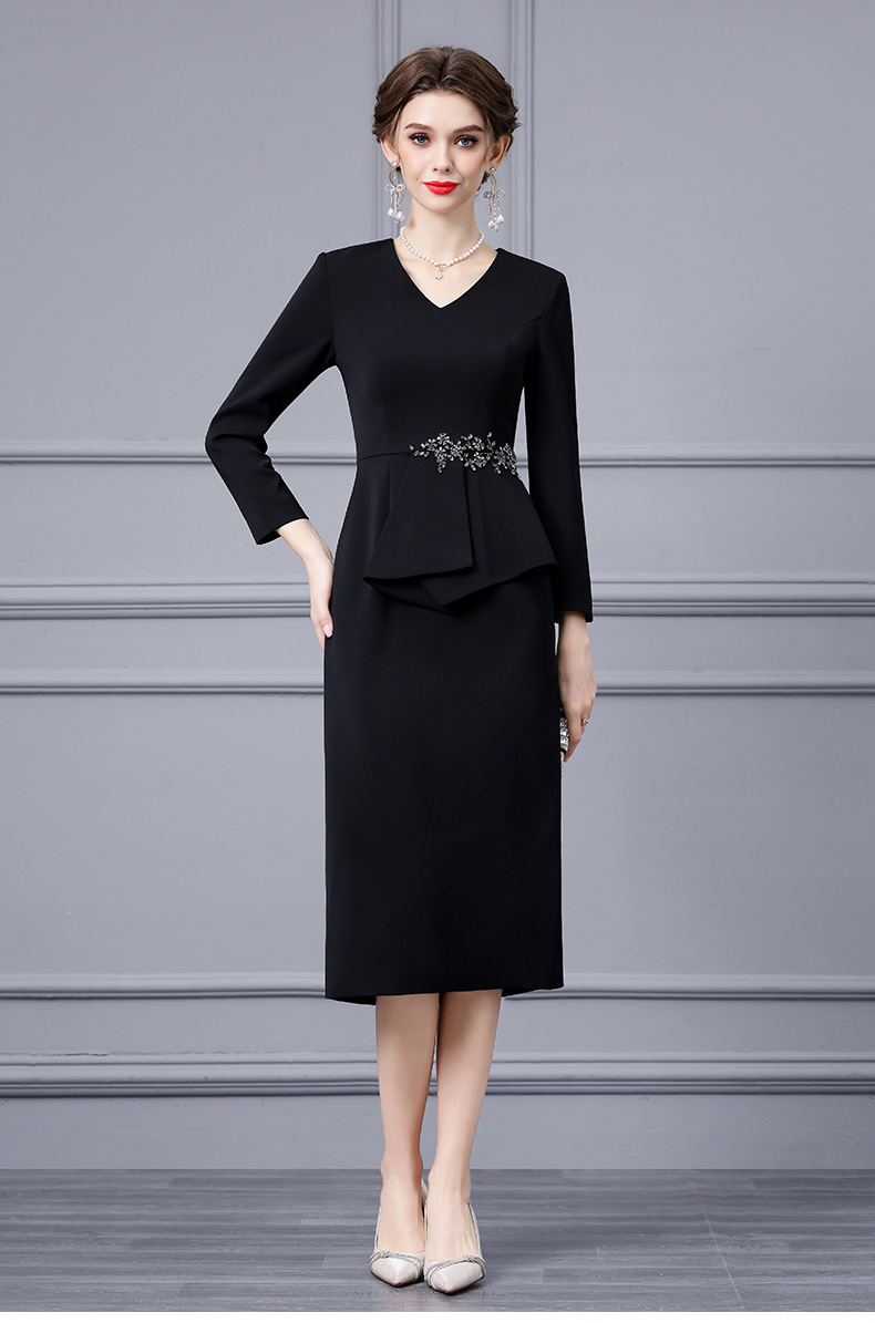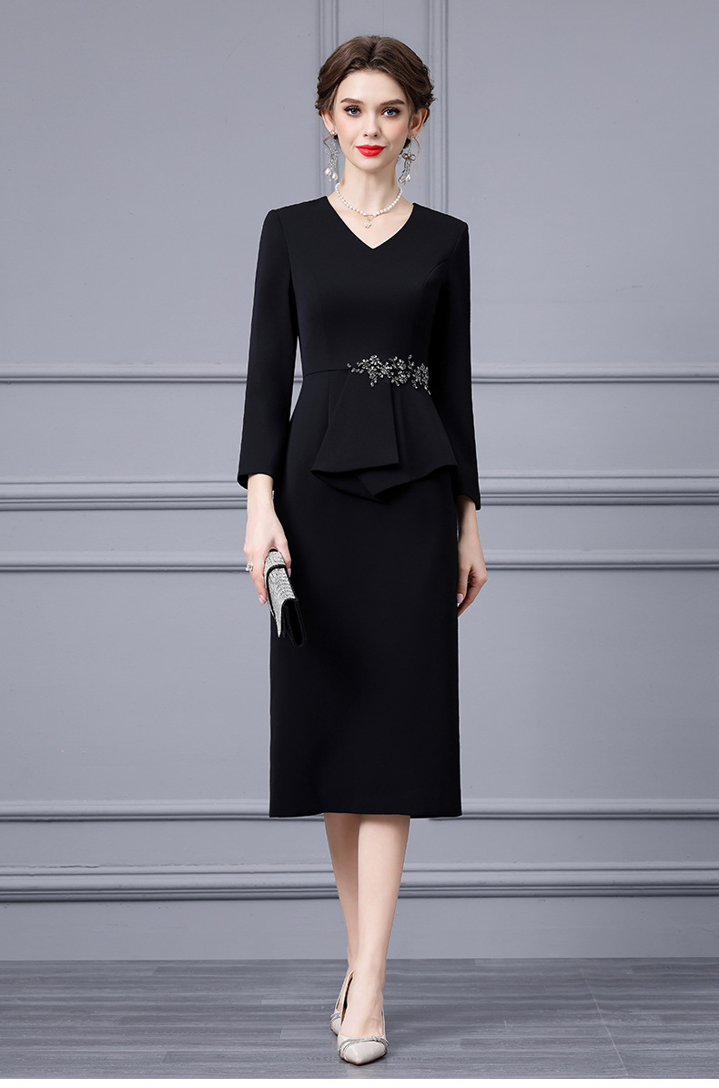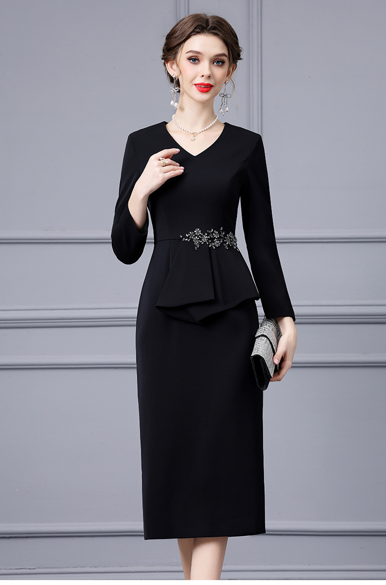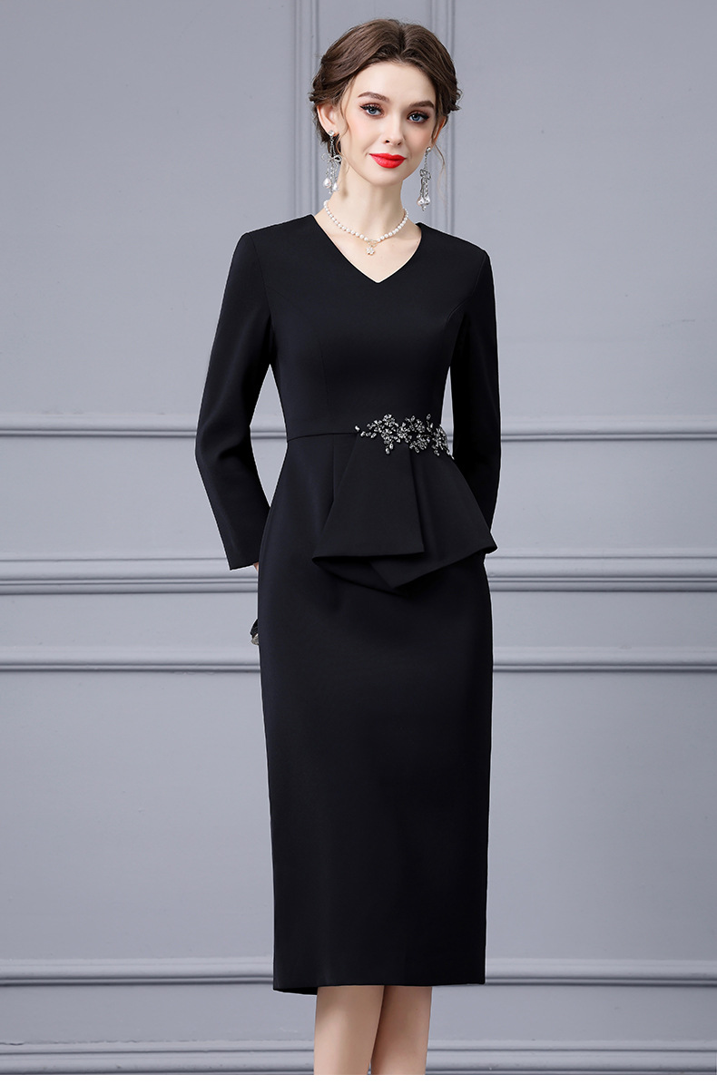 Chiếc đầm ôm dáng này có thiết kế cổ điển với màu đen dễ phối đồ. Chất vải dày dặn, tôn lên đường nét cơ thể một cách tinh tế. Điểm nhấn là những hạt đá lấp lánh được gắn tỉ mỉ tạo nên vẻ đẹp ấn tượng mà không quá lộng lẫy. Sản phẩm phù hợp cho những dịp đi làm hoặc dự tiệc nhẹ. Bạn có thể mặc kết hợp cùng giày cao gót và một chiếc túa xách nhỏ để hoàn thiện bộ trang phục. | Tên sản phẩm: Váy Đầm Liền Thân Nữ Hàng Mùa Xuân Thu Đông - Thời Trang Nữ | Mã sản phẩm: A9758 - Giá: 3.050.000đ | Mã nhà sản xuất: SHDAP-G06Hình ảnh sản phẩm