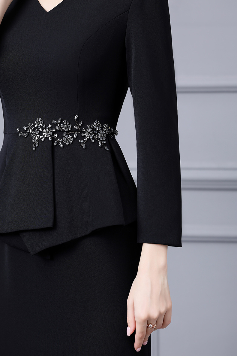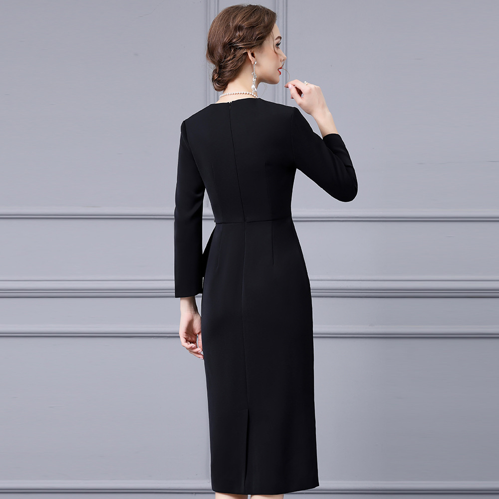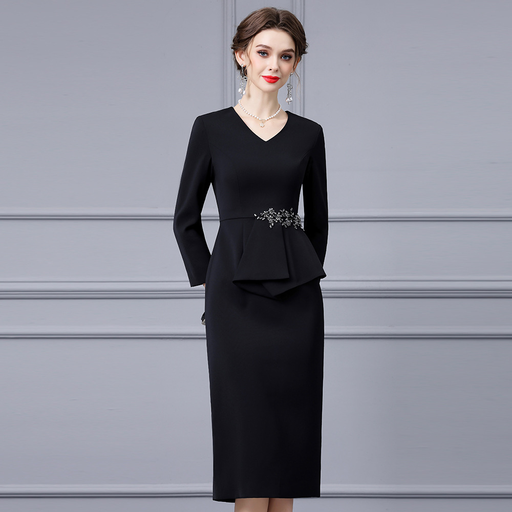 Chiếc đầm ôm dáng này có thiết kế cổ điển với màu đen dễ phối đồ. Chất vải dày dặn, tôn lên đường nét cơ thể một cách tinh tế. Điểm nhấn là những hạt đá lấp lánh được gắn tỉ mỉ tạo nên vẻ đẹp ấn tượng mà không quá lộng lẫy. Sản phẩm phù hợp cho những dịp đi làm hoặc dự tiệc nhẹ. Bạn có thể mặc kết hợp cùng giày cao gót và một chiếc túa xách nhỏ để hoàn thiện bộ trang phục. | Tên sản phẩm: Váy Đầm Liền Thân Nữ Hàng Mùa Xuân Thu Đông - Thời Trang Nữ | Mã sản phẩm: A9758 - Giá: 3.050.000đ | Mã nhà sản xuất: SHDAP-G06Hình ảnh sản phẩm