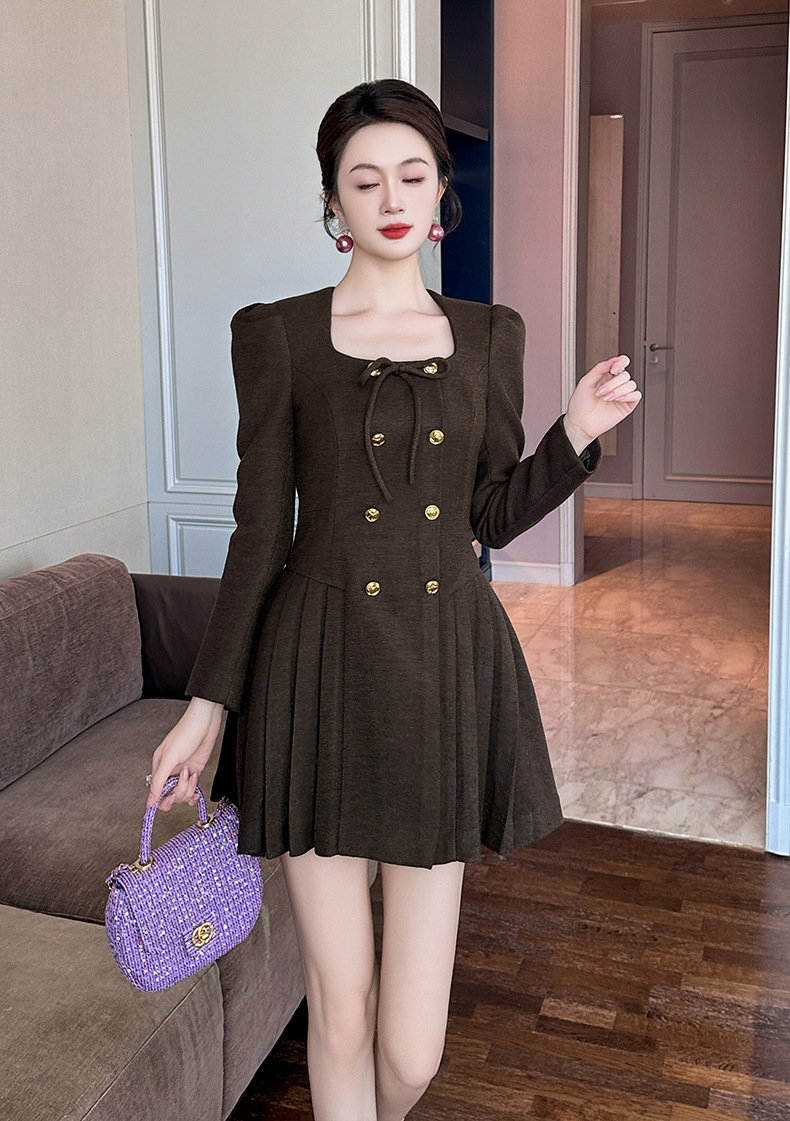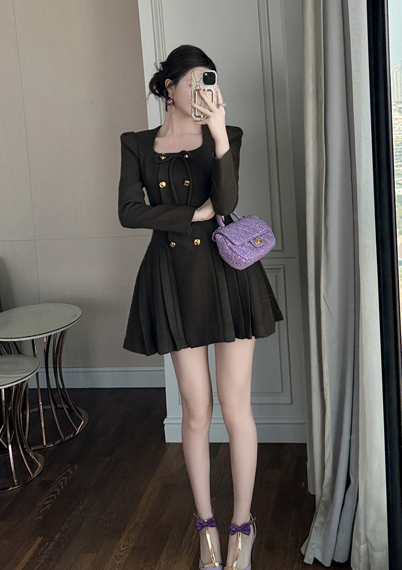 Chiếc đầm dáng chữ A này mang phong cách nữ sinh, thanh lịch. Cổ vuông kiểu cách Pháp tôn vinh vòng cổ, hàng cúc kép điểm nhấn tinh tế. Thiết kế eo ôm nhẹ tạo dáng thanh thoát, phù hợp nhiều dịp đi học hay dạo phố. Mặc cùng giày búp bê hoặc giày lười để hoàn thiện bộ trang phục. Chất vải mềm mại giúp bạn thoải mái vận động cả ngày. | Tên sản phẩm: Váy Đầm Liền Thân Nữ Hàng Mùa Xuân Thu Đông - Thời Trang Nữ | Mã sản phẩm: B0719 - Giá: 1.440.000đ | Mã nhà sản xuất: CHDG-G04Hình ảnh sản phẩm