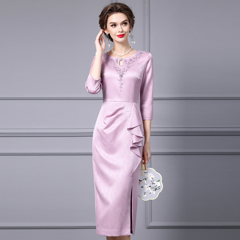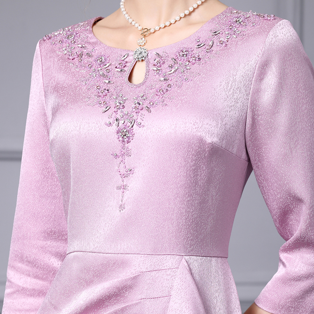 Chiếc đầm dành cho các bà mẹ, với thiết kế dáng dài thanh lịch phù hợp cho dịp thu. Chất vải mềm mại, thoáng mát tạo cảm giác dễ chịu. Điểm nhấn là đường viền tay và chân váy xòe nhẹ như cánh sen, được đính thêm những hạt đá lấp lánh tinh tế. Sản phẩm dễ dàng phối cùng giày cao gót hoặc sandal cho những buổi tiệc nhẹ hoặc gặp mặt gia đình. | Tên sản phẩm: Váy Đầm Liền Thân Nữ Hàng Mùa Xuân Thu Đông Trung Niên - Thời Trang Nữ | Mã sản phẩm: A9837 - Giá: 4.380.000đ | Mã nhà sản xuất: SHDAP-G06Hình ảnh sản phẩm