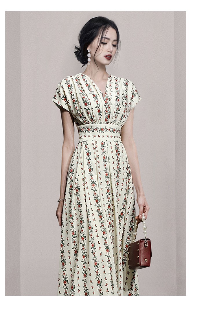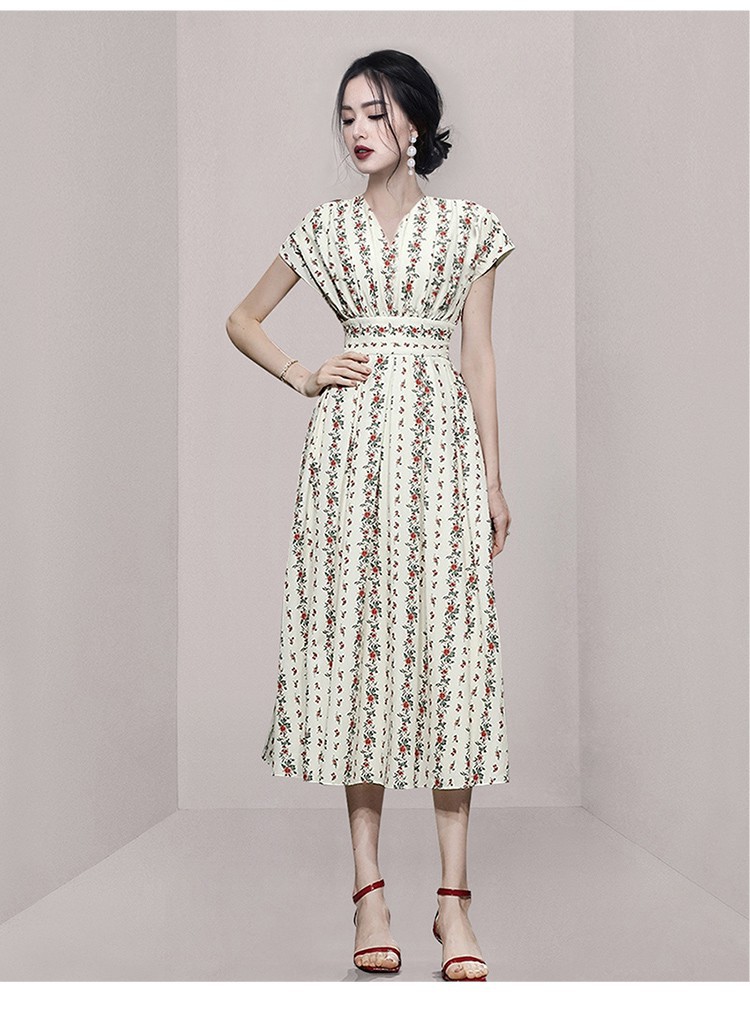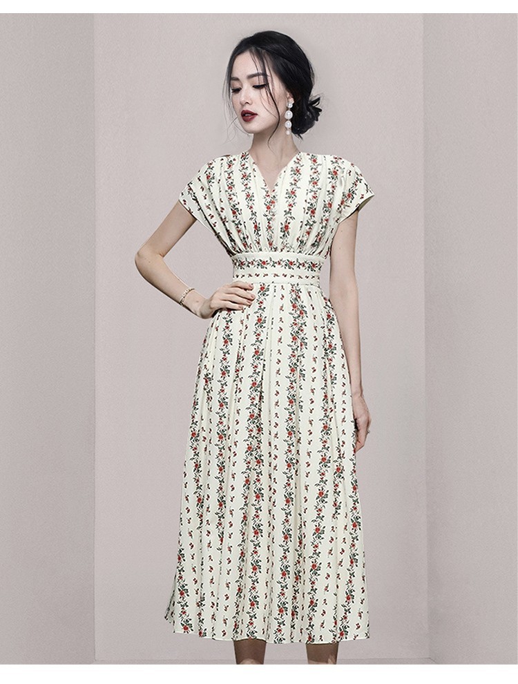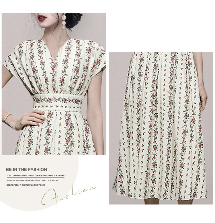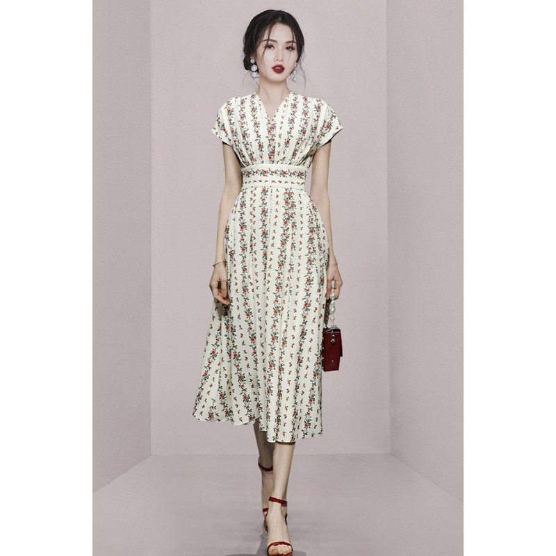 Chiếc đầm này mang phong cách cổ điển nhẹ nhàng, điểm nhấn là cổ chữ V tôn dáng. Thiết kế có những đường xếp ly tinh tế cùng họa tiết in nổi bật. Dáng váy xòe nhẹ phía dưới giúp tạo cảm giác thon gọn, eo được thiết kế ôm nhẹ nhàng. Chất vải mềm mại, thoáng mát, rất phù hợp cho những ngày hè. Có thể mặc đi làm, đi chơi hay dự những buổi gặp mặt thân mật. | Tên sản phẩm: Váy Đầm Liền Thân Nữ Họa Tiết Hoa Cổ Chữ V Hàng Mùa Hè Phục Cổ Cổ Điển - Thời Trang Nữ | Mã sản phẩm: T2100 - Giá: 1.060.000đ | Mã nhà sản xuất: JUOUTO-G03Hình ảnh sản phẩm