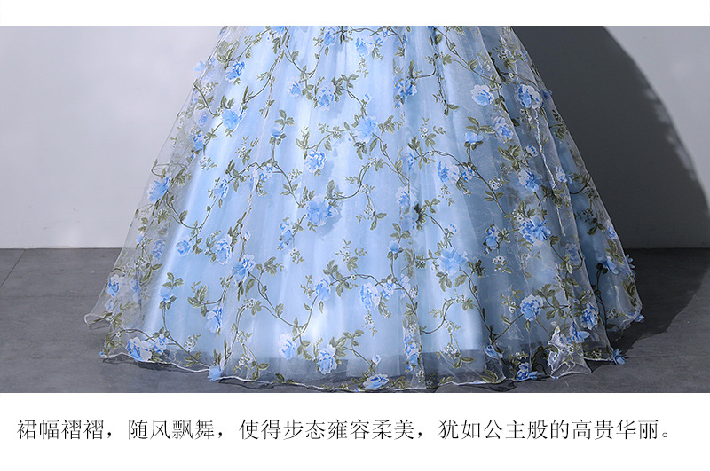 Váy dạ hội với họa tiết hoa nổi bật, kiểu dáng công chúa Pháp có phần xòe bồng bềnh. Thiết kế này rất phù hợp để chụp ảnh nghệ thuật, dạo phố hoặc dùng trong các buổi biểu diễn. Bạn có thể mặc nó cho những buổi tiệc quan trọng hoặc ghi lại những bức hình đẹp. Chất vải mềm mại tôn lên dáng người một cách duyên dáng. Sản phẩm dễ dàng kết hợp với các phụ kiện để tạo nên phong cách riêng cho người mặc. | Tên sản phẩm: Váy Đầm Liền Thân Nữ Họa Tiết Hoa Dùng Trong Lễ Cưới - Thời Trang Nữ | Mã sản phẩm: A0806 - Giá: 1.730.000đ | Mã nhà sản xuất: SHTYFA-G05Hình ảnh sản phẩm