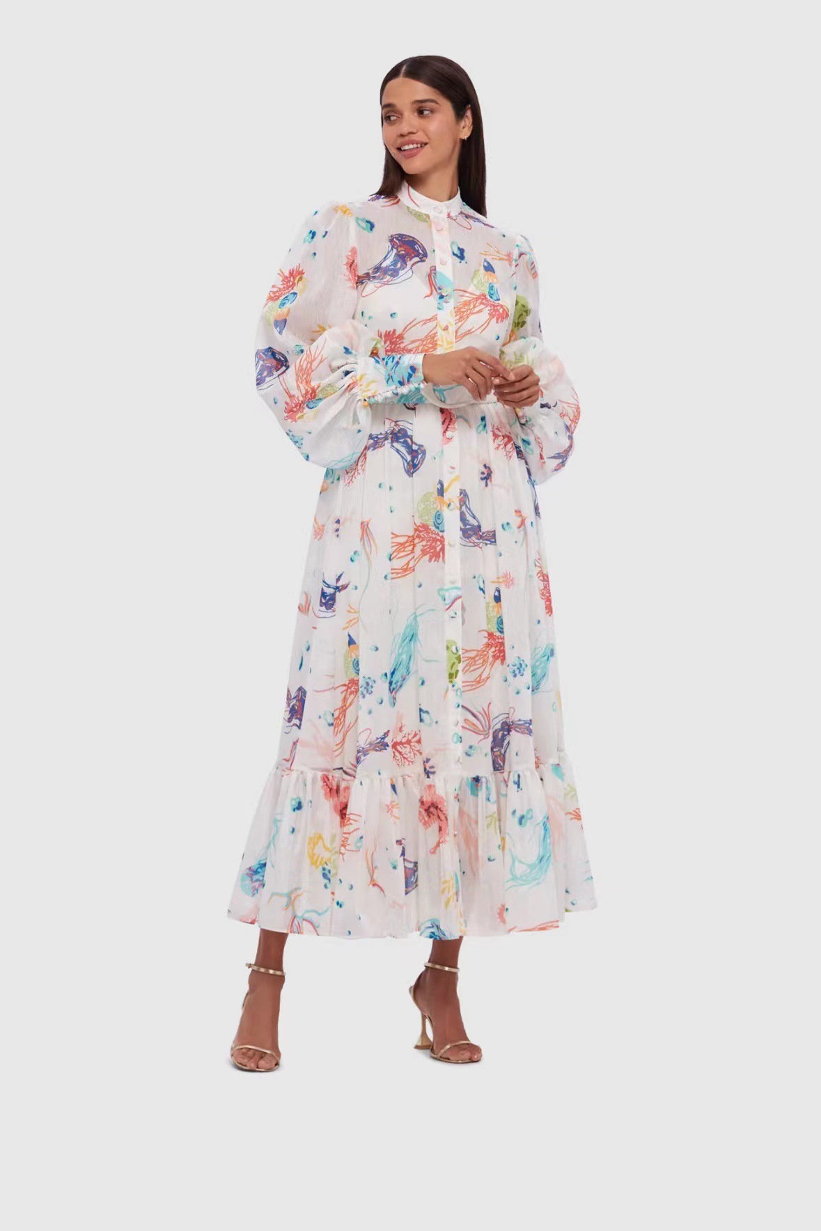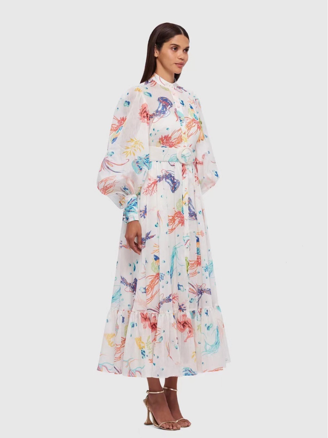 Chiếc đầm dáng dài mang phong cách Úc độc đáo cho nàng. Thiết kế cổ dựng, tay bồng nhẹ nhàng và eo có thắt nơ tạo điểm nhấn. Hoa văn in trên vải mềm mại, phù hợp cho dịp đi làm hay dạo phố. Mặc kèm giày bệt hoặc giày có qu để trông thật duyên dáng và thoải mái. | Tên sản phẩm: Váy Đầm Liền Thân Nữ Họa Tiết Hoa Hàng Mùa Xuân Thu Đông - Thời Trang Nữ | Mã sản phẩm: K7570 - Giá: 1.810.000đ | Mã nhà sản xuất: GUDG-G05Hình ảnh sản phẩm