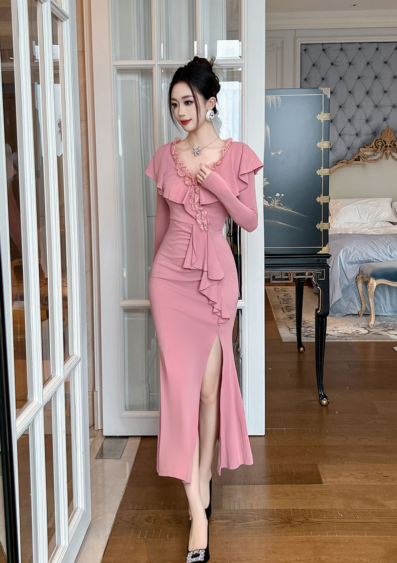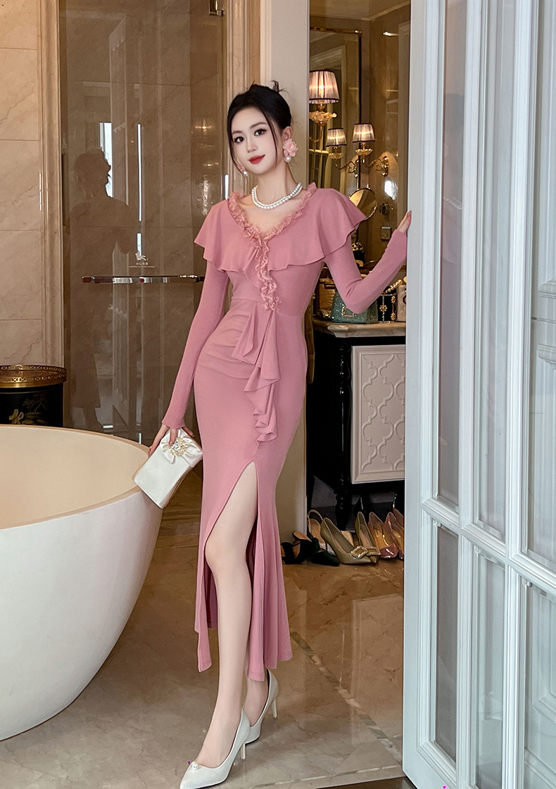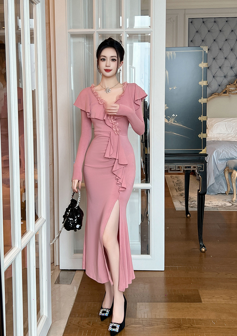 Chiếc đầm dành cho những buổi hẹn hò, mang đến vẻ đẹp dịu dàng và nữ tính. Thiết kế có phần cổ chữ V tạo cảm giác thanh thoát, kết hợp cùng đường viền tà áo uốn lượn mềm mại như cánh sen. Phần thân ôm nhẹ và xòe ra ở vạt dưới tựa đuôi cá, giúp tôn lên những đường nét cơ thể. Bạn có thể mặc đi làm, dự tiệc hoặc gặp gỡ bạn bè, dễ dàng phối cùng giày cao gót và một chiếc túi xách nhỏ. | Tên sản phẩm: Váy Đầm Liền Thân Nữ Kiểu Đuôi Cá Cổ Chữ V Hàng Mùa Xuân Thu Đông - Thời Trang Nữ | Mã sản phẩm: B4758 - Giá: 1.260.000đ | Mã nhà sản xuất: CHDG-G04Hình ảnh sản phẩm
