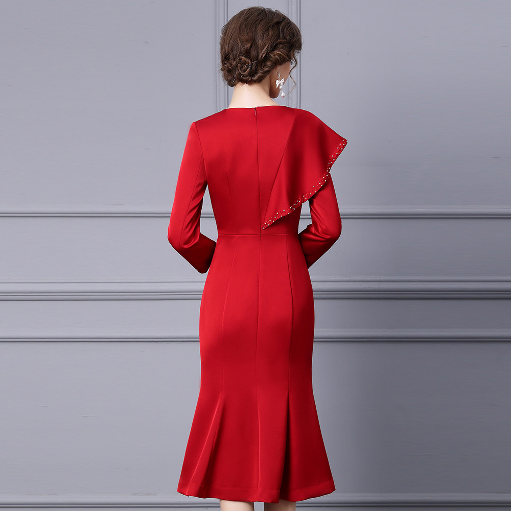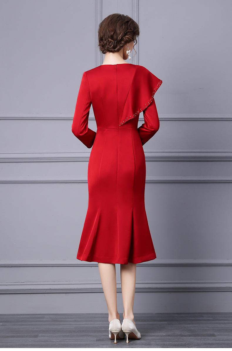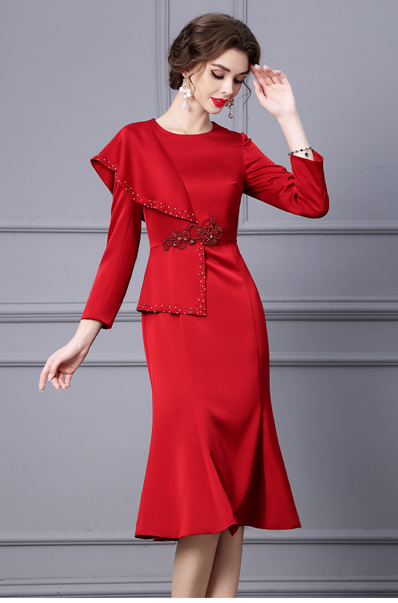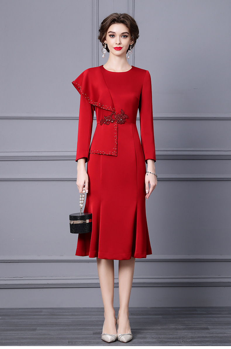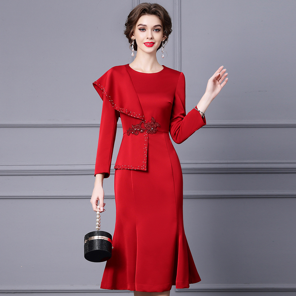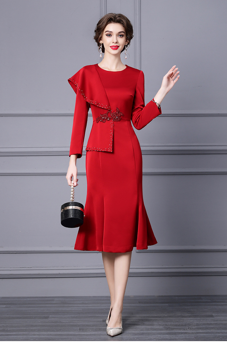 Chiếc đầm dành cho những dịp cần vẻ ngoài chỉn chu. Thiết kế ôm tôn dáng với phần chân váy xòe nhẹ như đuôi cá, giúp tạo đường nét cơ thể mềm mại. Điểm nhấn là các đường viền tay áo và viền váy được trang trí tinh tế cùng những chi tiết lấp lánh. Chất vải dày dặn phù hợp cho tiết trời mùa thu. Có thể phối cùng giày cao gót và một số phụ kiện nhỏ để hoàn thiện bộ trang phục. | Tên sản phẩm: Váy Đầm Liền Thân Nữ Kiểu Đuôi Cá Hàng Mùa Xuân Thu Đông - Thời Trang Nữ | Mã sản phẩm: A9785 - Giá: 1.730.000đ | Mã nhà sản xuất: SHDAP-G05Hình ảnh sản phẩm