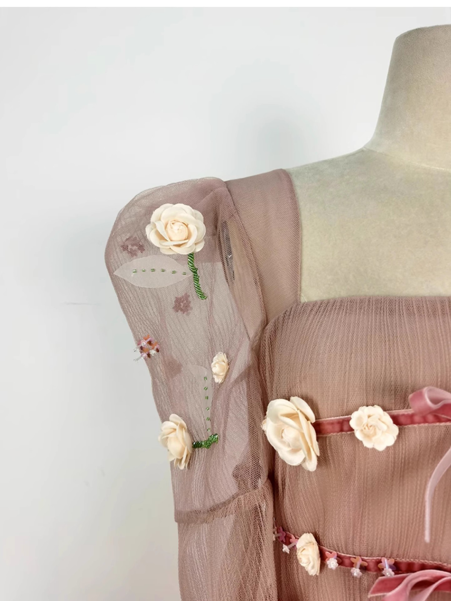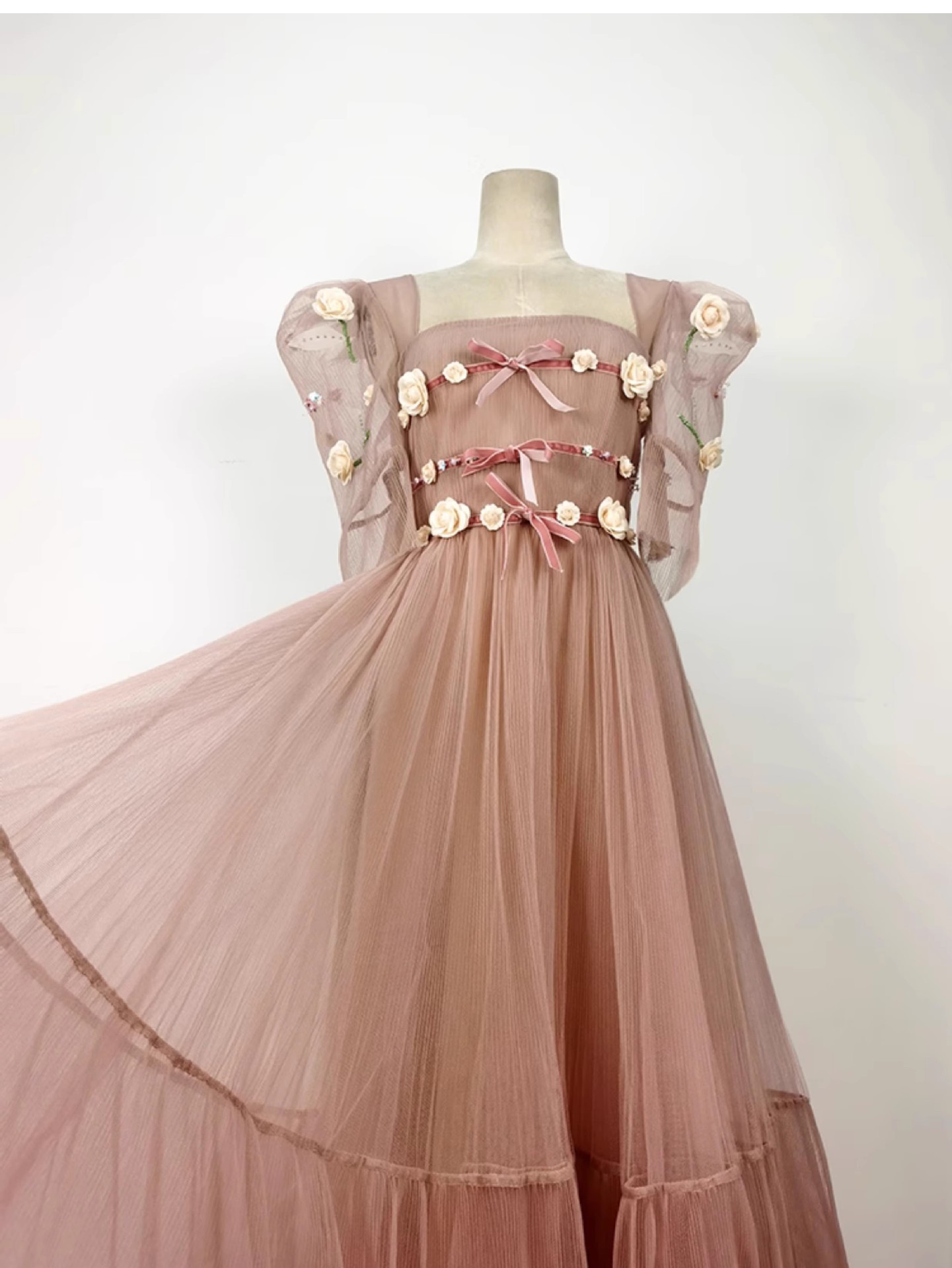 Chiếc đầm dự tiệc này có phần cổ vuông và tay bồng điệu đà, tạo điểm nhấn nữ tính. Thân đầm xòe rộng với nhiều lớp vải mỏng nhẹ, phối cùng những đường nhún và họa tiết hoa được may thủ công tinh tế. Chất vải mềm mại giúp người mặc thoải mái vận động. Sản phẩm phù hợp cho các buổi tiệc hay sự kiện, dễ dàng phối cùng phụ kiện và giày cao gót để hoàn thiện set đồ. | Tên sản phẩm: Váy Đầm Liền Thân Nữ Lưới Mỏng Họa Tiết Hoa - Thời Trang Nữ | Mã sản phẩm: K6745 - Giá: 3.960.000đ | Mã nhà sản xuất: FORYCT-G06Hình ảnh sản phẩm