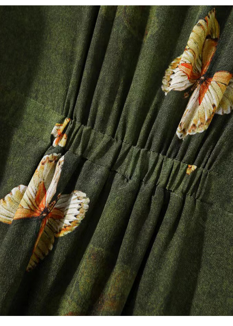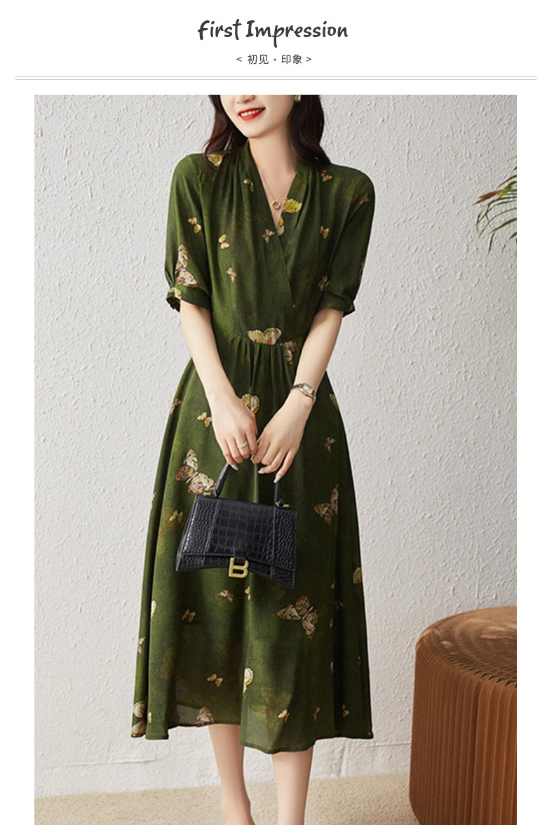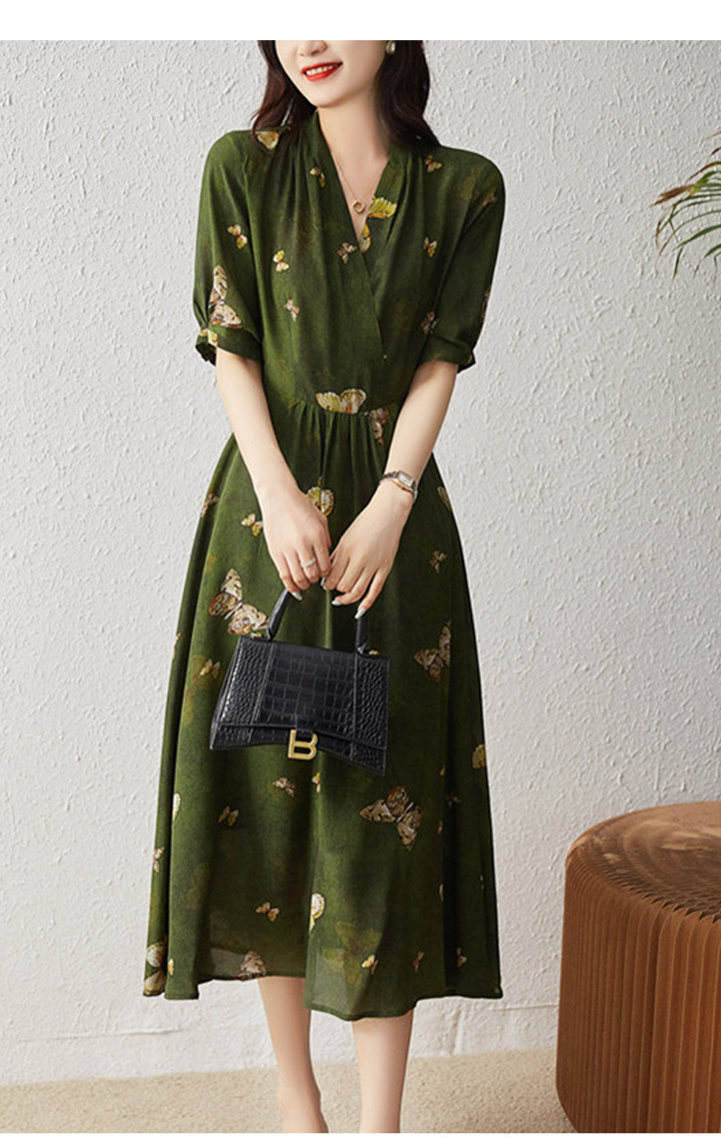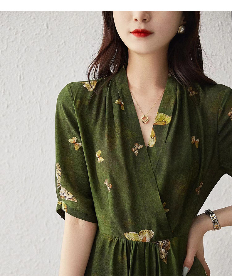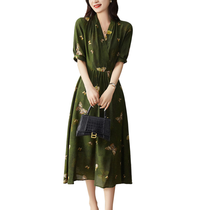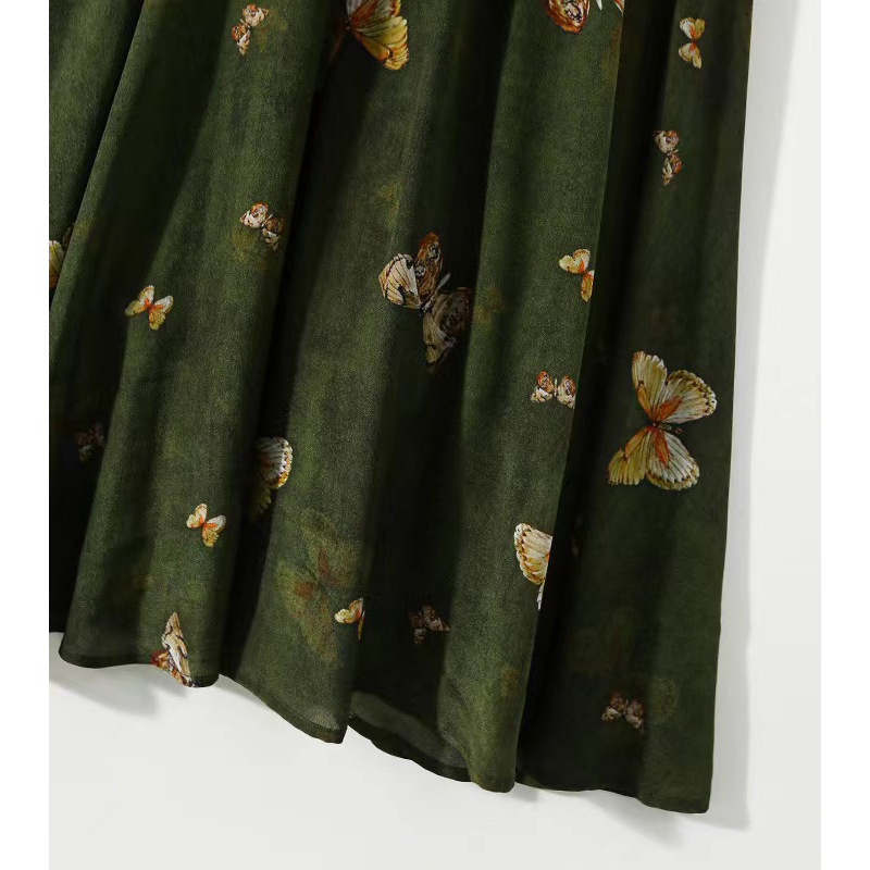 Chiếc váy ngắn tay dáng dài qua gối, điểm nhấn là cổ chữ V tôn dáng cùng họa tiết bươm bướm in nổi bật. Thiết kế này mang phong cách hoài cổ nhẹ nhàng, phù hợp cho những ngày hè. Bạn có thể mặc đi làm, đi chơi hay dự tiệc nhẹ. Sản phẩm dễ dàng phối với giày sandal hoặc giày bệt để tạo nên vẻ ngoài ấn tượng. | Tên sản phẩm: Váy Đầm Liền Thân Nữ Ngắn Tay Họa Tiết Hoa Cổ Chữ V Hàng Mùa Hè Phục Cổ Cổ Điển - Thời Trang Nữ | Mã sản phẩm: B7019 - Giá: 1.060.000đ | Mã nhà sản xuất: DODG-G03Hình ảnh sản phẩm