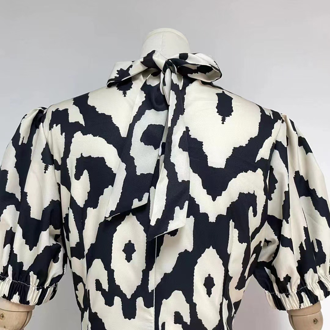 Chiếc váy dài tay ngắn này là điểm nhấn thu hút cho mùa thu. Cổ áo kiểu khăn choàng cùng phần tay được nối vải xếp ly tạo nên nét duyên dáng. Họa tiết in độc đáo và thiết kế ôm eo giúp tôn lên các đường nét cơ thể. Bạn có thể mặc nó đi làm, dạo phố hay trong những buổi gặp mặt thân mật, đều toát lên vẻ thanh lịch và hiện đại. | Tên sản phẩm: Váy Đầm Liền Thân Nữ Ngắn Tay Họa Tiết Hoa Hàng Mùa Xuân Thu Đông - Thời Trang Nữ | Mã sản phẩm: K7427 - Giá: 1.650.000đ | Mã nhà sản xuất: GUDG-G05Hình ảnh sản phẩm