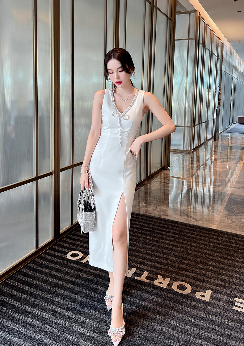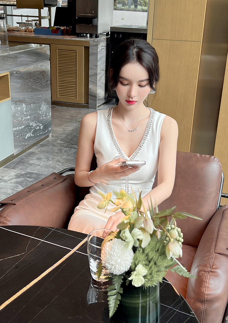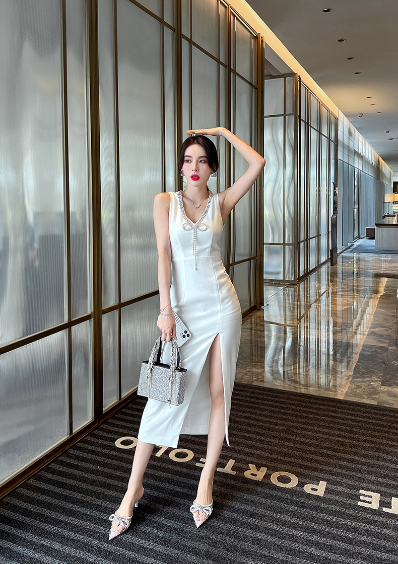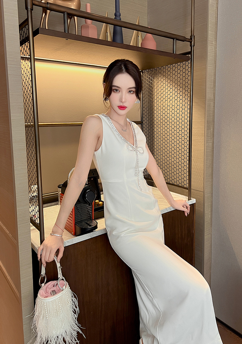 Chiếc đầm không tay dành cho nữ, kiểu dáng ôm tôn lên những đường nét cơ thể một cách nhẹ nhàng. Điểm nhấn đáng yêu là chi tiết nơ kết hợp đá lấp lánh trước ngực, tạo nên vẻ đẹp vừa hiện đại vừa dịu dàng. Chất vải mềm mại, thoáng mát, thích hợp cho mùa hè. Dễ dàng phối cùng giày cao gót hay balo để đi làm, dạo phố hoặc dự tiệc nhẹ. | Tên sản phẩm: Váy Đầm Liền Thân Nữ Thắt Nơ Bướm Dáng Ôm Hàng Mùa Hè - Thời Trang Nữ | Mã sản phẩm: G3926 - Giá: 1.120.000đ | Mã nhà sản xuất: CHDG-G04Hình ảnh sản phẩm