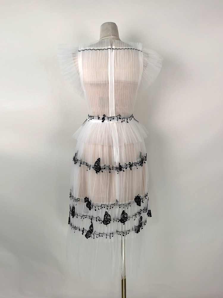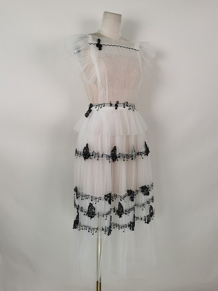 Chiếc đầm xòe mang phong cách thiết kế trẻ trung, với điểm nhấn là phần tay phồng cách điệu. Chất vải mỏng nhẹ kết hợp lớp voan tạo nên vẻ đẹp mềm mại, bay bổng. Trên nền vải là họa tiết thêu tinh xảo hình nơ cùng các dấu nhạc duyên dáng. Sản phẩm phù hợp cho nhiều dịp đi chơi, dạo phố. Có thể giặt tay và phơi nơi thoáng mát để giữ form áo được bền đẹp. | Tên sản phẩm: Váy Đầm Liền Thân Nữ Thắt Nơ Bướm Lưới Mỏng Thêu Họa Tiết Hoa - Thời Trang Nữ | Mã sản phẩm: K6796 - Giá: 3.960.000đ | Mã nhà sản xuất: FORYCT-G06Hình ảnh sản phẩm