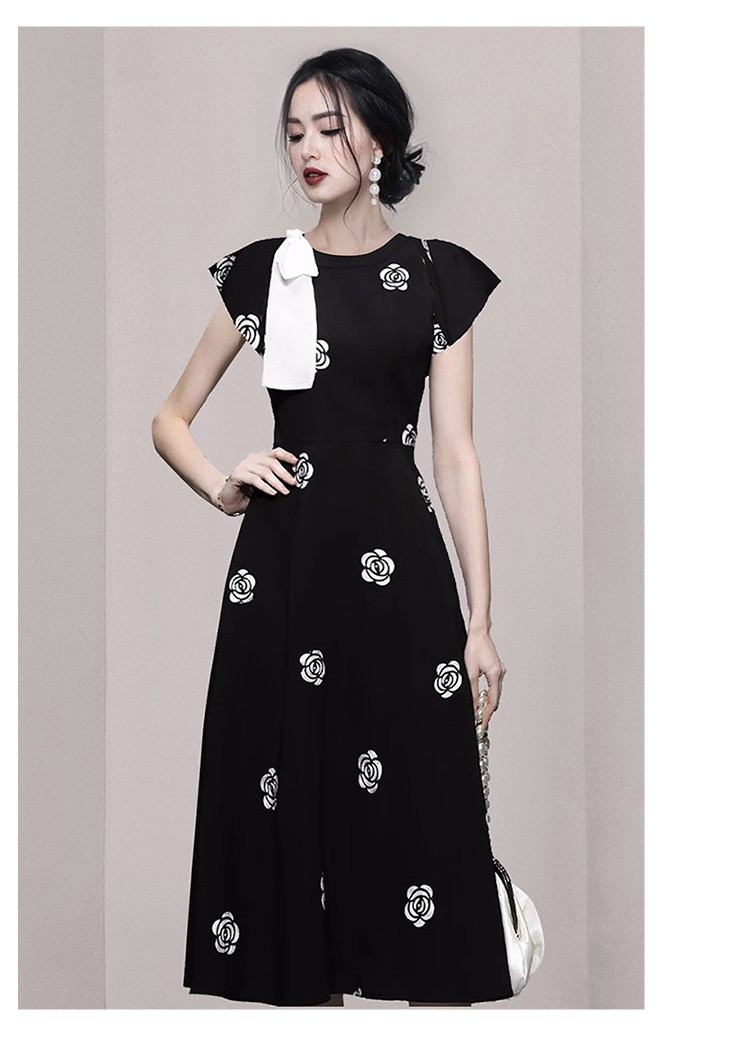 Chiếc đầm dáng chữ A này điểm nhấn là phần tay áo được cách điệu hình nơ, tôn lên vẻ đẹp dịu dàng. Thiết kế ôm nhẹ vòng eo, phối cùng họa tiết thêu tinh tế tạo nên điểm thu hút riêng. Chất vải mỏng nhẹ, thoáng mát, rất phù hợp cho những ngày hè. Bạn có thể mặc đi làm, dự tiệc hay dạo phố. Phối cùng giày cao gót và túi xách nhỏ để hoàn thiện set đồ. | Tên sản phẩm: Váy Đầm Liền Thân Nữ Thắt Nơ Bướm Thêu Họa Tiết Hoa Hàng Mùa Hè - Thời Trang Nữ | Mã sản phẩm: T2107 - Giá: 990.000đ | Mã nhà sản xuất: JUOUTO-G03Hình ảnh sản phẩm
