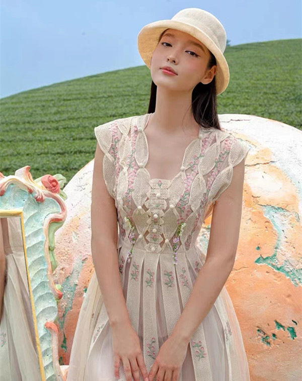 Đầm thiết kế dáng dài với hoa văn nhỏ xinh in khắp thân. Cổ chữ V tôn dáng, tay áo không tay mang đến sự thoải mái. Điểm nhấn là những đường thêu tay tinh xảo trên nền vải mềm mại, tạo vẻ thanh thoát cho người mặc. Sản phẩm phù hợp cho những dịp dạo phố hay gặp gỡ bạn bè. Có thể kết hợp cùng giày bệt và túi xách để tạo phong cách nhẹ nhàng. | Tên sản phẩm: Váy Đầm Liền Thân Nữ Thêu Họa Tiết Hoa Cổ Chữ V Hàng Mùa Xuân Thu Đông - Thời Trang Nữ | Mã sản phẩm: k0656 - Giá: 1.710.000đ | Mã nhà sản xuất: GUDG-G05Hình ảnh sản phẩm