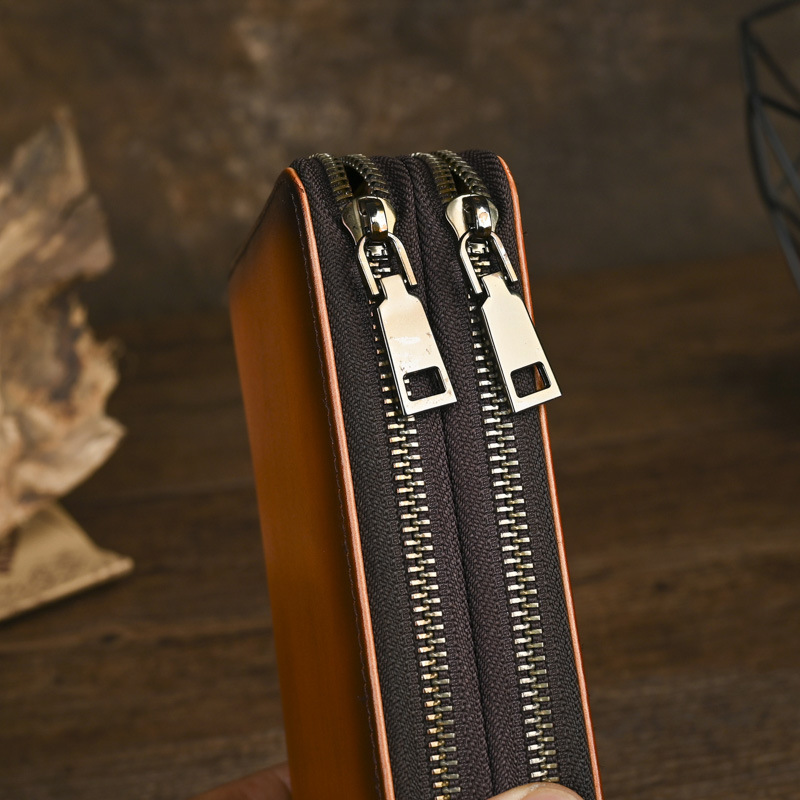 Ví da nam kiểu cổ điển này được làm từ chất liệu da bò mềm mại và bền bỉ. Thiết kế dáng dài có khóa kéo, bên trong gồm hai ngăn chính giúp bạn sắp xếp tiền mặt và thẻ dễ dàng. Bạn có thể cầm tay hoặc để gọn trong túi áo khoác. Sản phẩm mang phong cách thư giãn, phù hợp cho nhiều dịp sử dụng hàng ngày. | Tên sản phẩm: Ví Bóp Cầm Tay Nam Chất Liệu Da Bò Phục Cổ Cổ Điển - Túi Xách Ví Nam | Mã sản phẩm: A3815 - Giá: 670.000đ | Mã nhà sản xuất: GUDNG-G02Hình ảnh sản phẩm