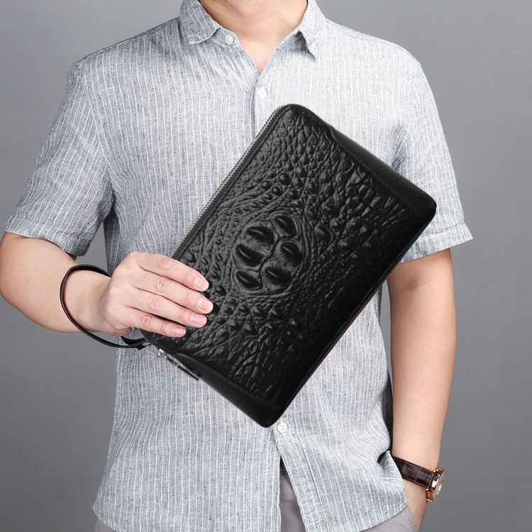 Chiếc cặp tay nam mới này có bề mặt vân da cá sấu tạo điểm nhấn, kết hợp hai dây kéo mượt mà. Thiết kế vừa vặn cho công sở và cả những dịp thư giãn, rất dễ phối đồ. Bên trong rộng rãi, giúp bạn sắp xếp máy tính bảng, tài liệu và các vật dụng cá nhân gọn gàng. Chỉ cần cầm trên tay hoặc kẹp dưới cánh tay là bạn đã có một phong cách chỉn chu và lịch thiệp. | Tên sản phẩm: Ví Bóp Cầm Tay Nam Chất Liệu Da Bò Vân Da Cá Sấu - Túi Xách Ví Nam | Mã sản phẩm: A4686 - Giá: 610.000đ | Mã nhà sản xuất: BADG-G02Hình ảnh sản phẩm