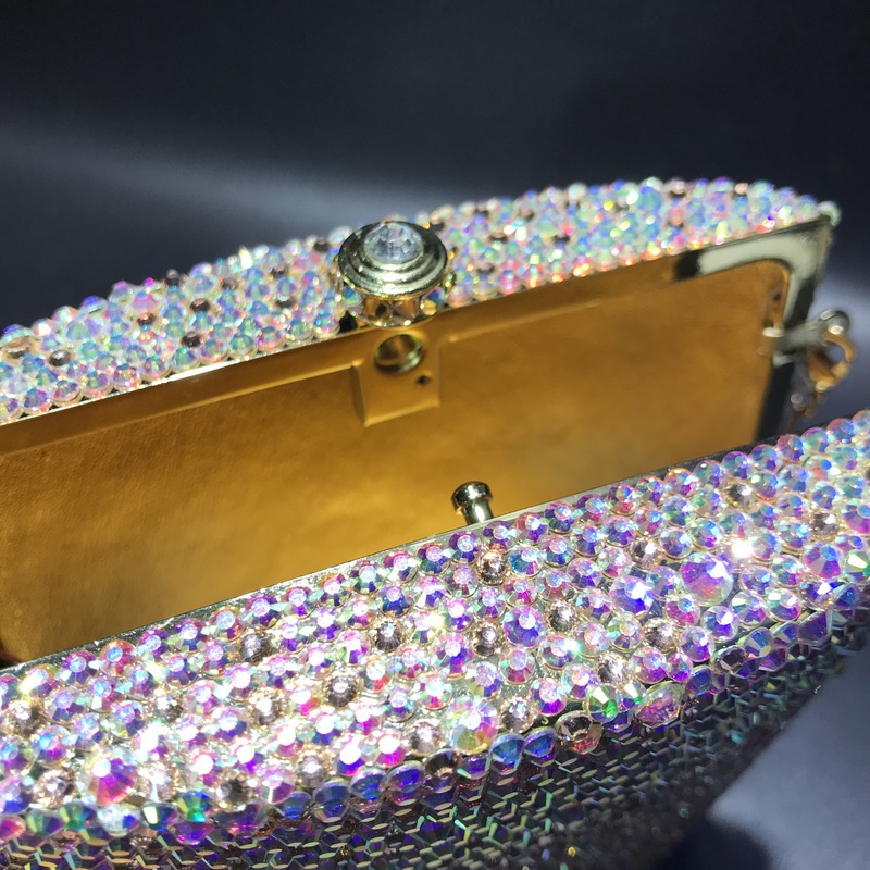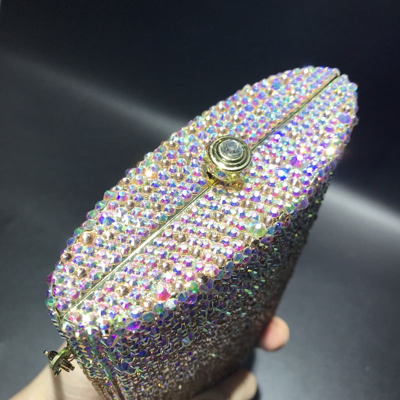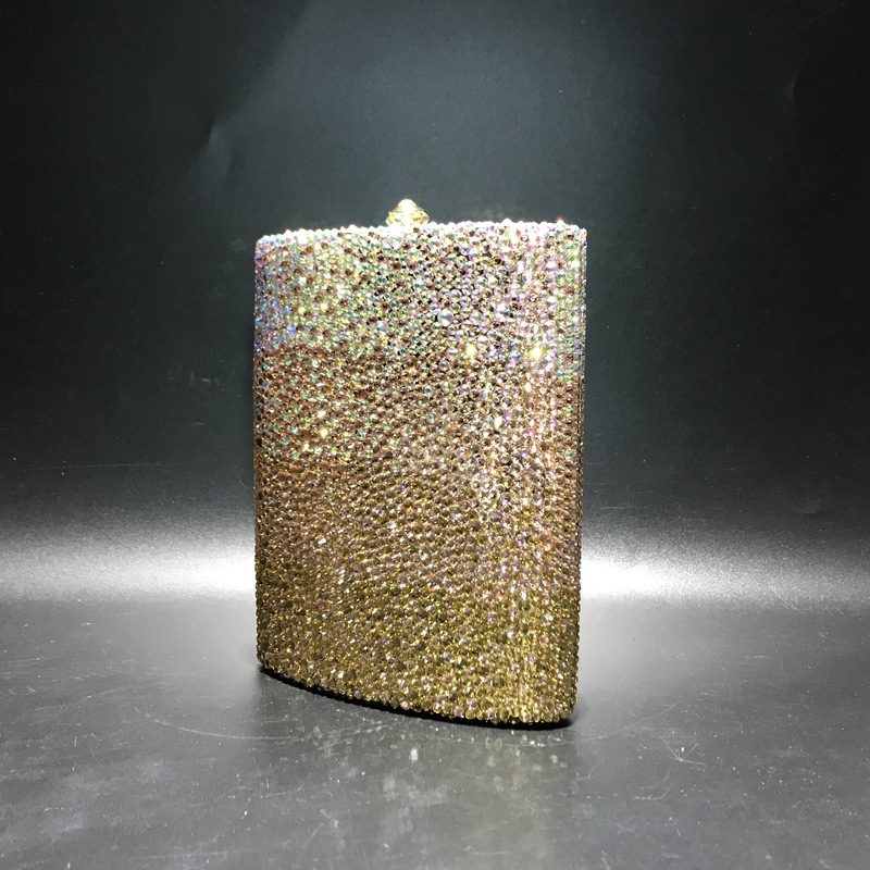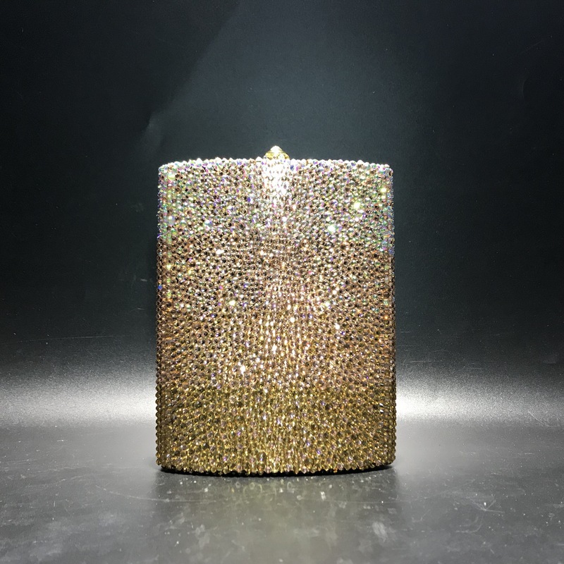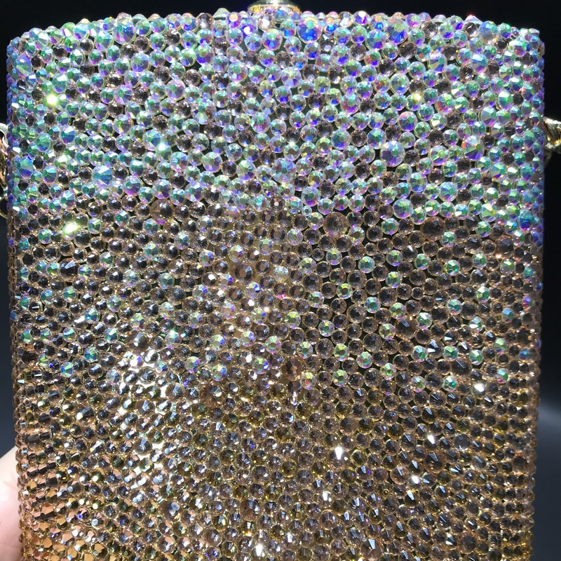 Túi cầm tay dành cho các buổi tiệc tối, được tạo hình như một chiếc bình rượu cách điệu với nhiều màu sắc phối hợp. Điểm nhấn nổi bật là toàn bộ mặt túi được phủ kín bởi các viên đá cắt mài lấp lánh như pha lê, được gắn hoàn toàn thủ công tinh xảo. Kiểu dáng thời thượng, phù hợp để cầm tay hoặc khoác trên cánh tay, giúp bạn thêm phần nổi bật trong những dịp dự tiệc hay sự kiện quan trọng. | Tên sản phẩm: Ví Bóp Cầm Tay Nữ - Túi Ví Nữ | Mã sản phẩm: K1838 - Giá: 2.960.000đ | Mã nhà sản xuất: PURYRM-G06Hình ảnh sản phẩm
