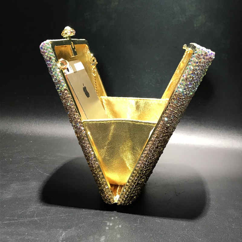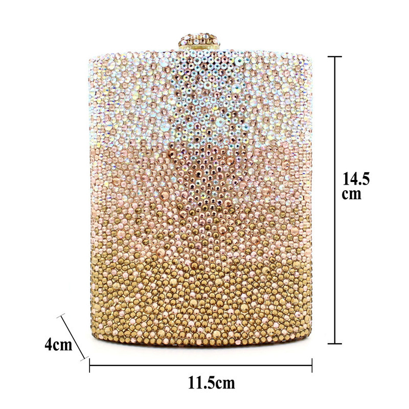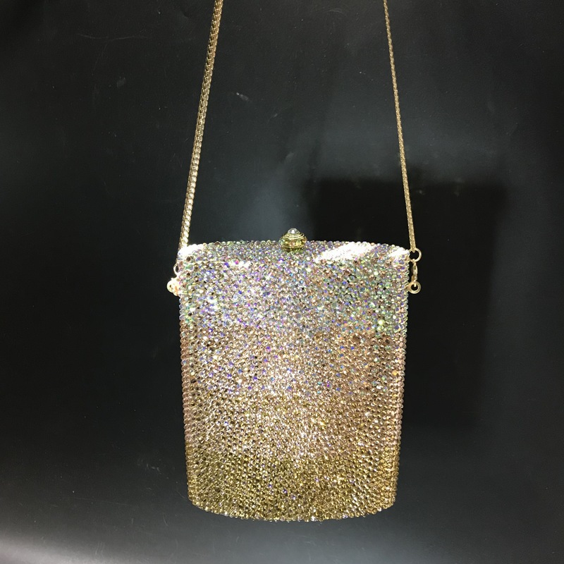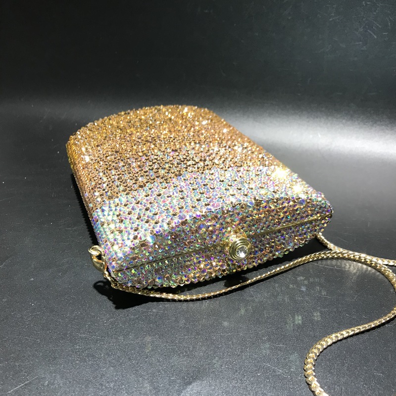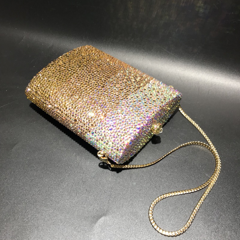 Túi cầm tay dành cho các buổi tiệc tối, được tạo hình như một chiếc bình rượu cách điệu với nhiều màu sắc phối hợp. Điểm nhấn nổi bật là toàn bộ mặt túi được phủ kín bởi các viên đá cắt mài lấp lánh như pha lê, được gắn hoàn toàn thủ công tinh xảo. Kiểu dáng thời thượng, phù hợp để cầm tay hoặc khoác trên cánh tay, giúp bạn thêm phần nổi bật trong những dịp dự tiệc hay sự kiện quan trọng. | Tên sản phẩm: Ví Bóp Cầm Tay Nữ - Túi Ví Nữ | Mã sản phẩm: K1838 - Giá: 2.960.000đ | Mã nhà sản xuất: PURYRM-G06Hình ảnh sản phẩm