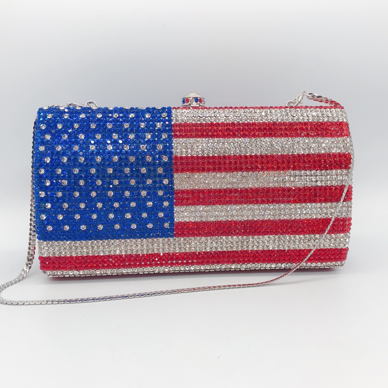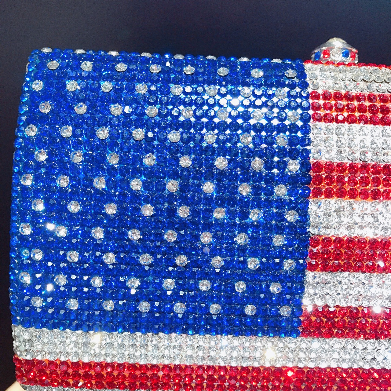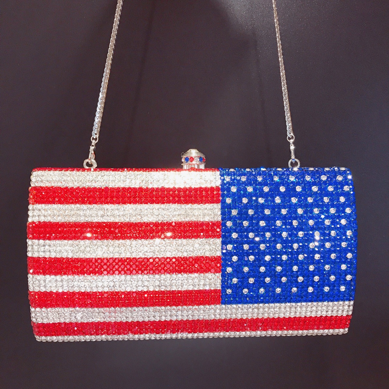 Túi cầm tay kiểu dáng vuông vức, phù hợp cho các buổi tiệc tối. Mặt trước túi được trang trí bằng các đường kẻ sọc và họa tiết lá cờ, tạo điểm nhấn nổi bật. Toàn bộ bề mặt túi được đính kết với nhiều hạt pha lê lấp lánh, bắt sáng tinh tế. Bên trong túi có một ngăn chính đủ rộng để đựng các vật dụng cá nhân cần thiết. Chỉ cần cầm trên tay hoặc kẹp nhẹ dưới cánh tay là bạn đã có một phong cách chỉn chu cho buổi dạ tiệc. | Tên sản phẩm: Ví Bóp Cầm Tay Nữ - Túi Ví Nữ | Mã sản phẩm: K1888 - Giá: 2.310.000đ | Mã nhà sản xuất: PURYRM-G05Hình ảnh sản phẩm