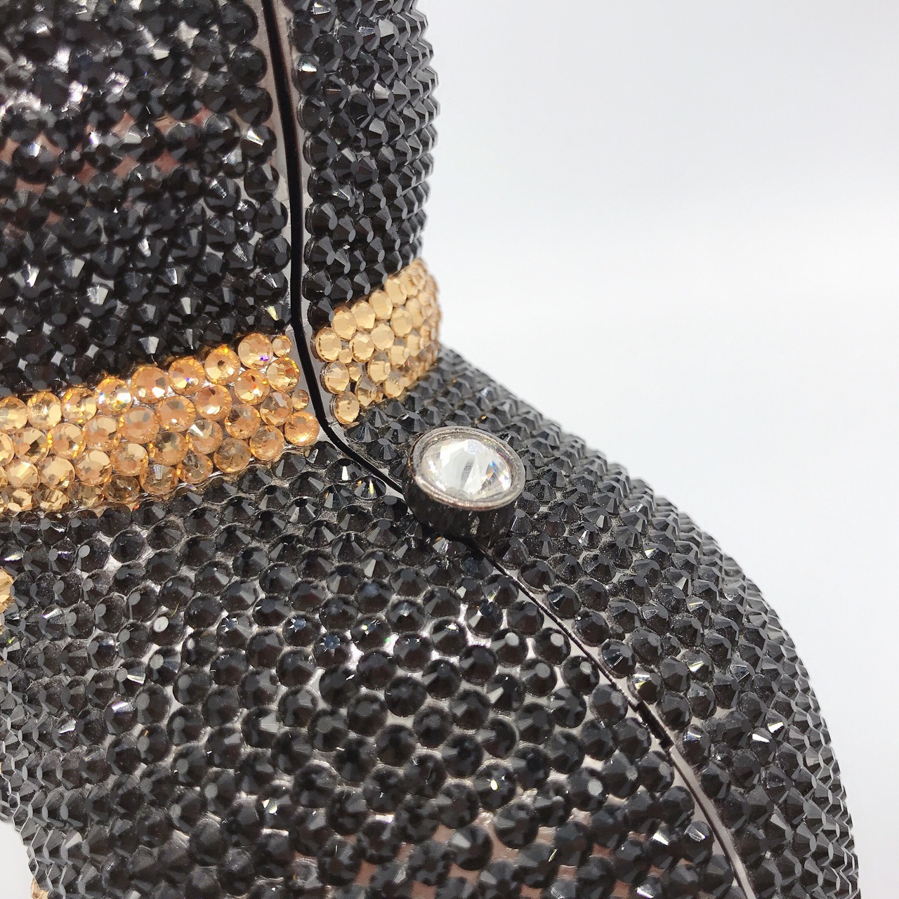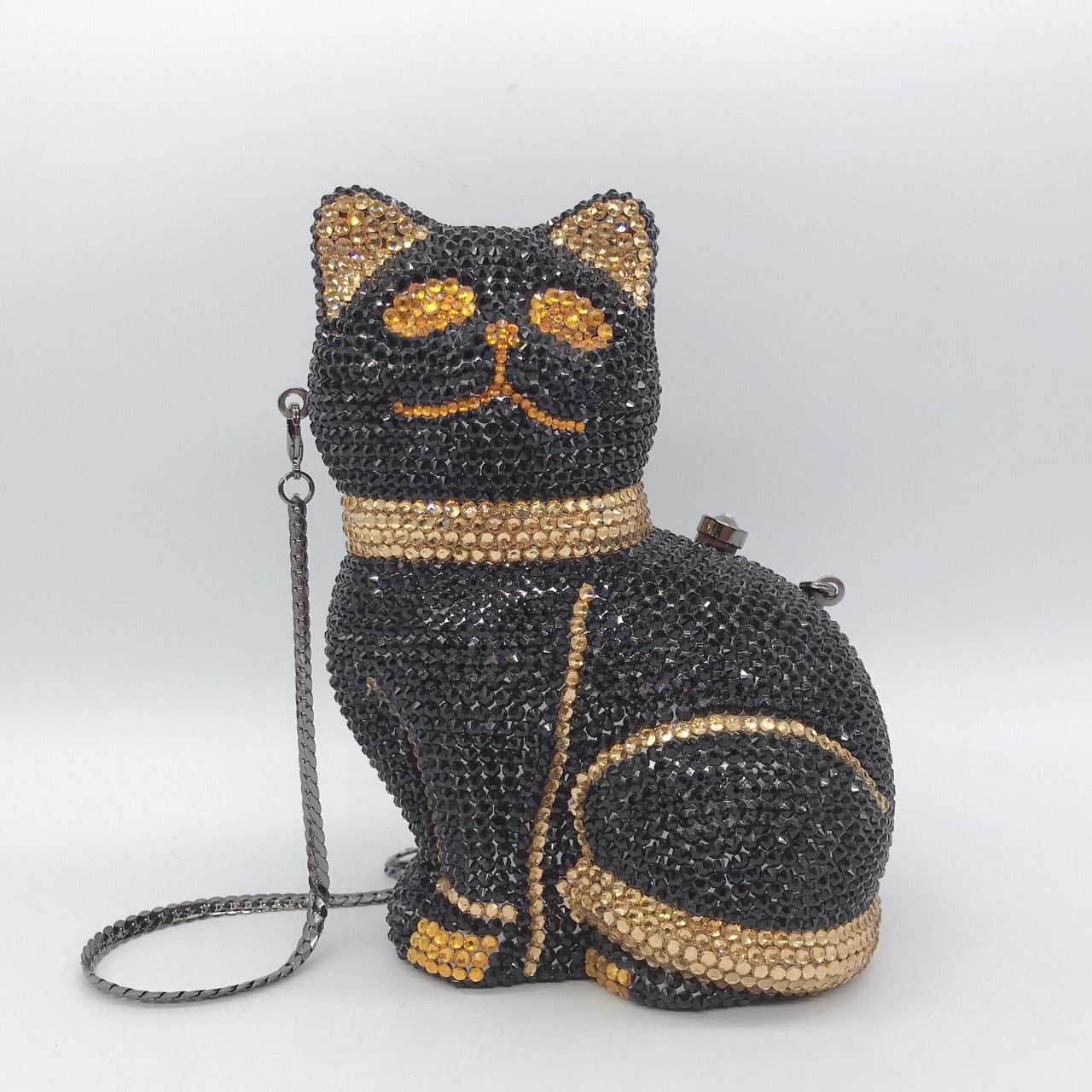 Chiếc túi cầm tay này có kiểu dáng hộp cứng cáp, lấy cảm hứng từ hình dáng đáng yêu của loài mèo. Toàn bộ mặt túi được phủ kín bởi các viên đá lấp lánh, tạo nên vẻ ngoài bắt mắt và tinh xảo. Thiết kế túi không qu, dạng cầm tay, rất phù hợp để phối cùng các bộ trang phục dự tiệc. Bạn chỉ cần cầm túi trong tay hoặc kẹp nhẹ dưới cánh tay là đã có thể tự tin tham gia các buổi họp mặt. | Tên sản phẩm: Ví Bóp Cầm Tay Nữ Phong Cách Âu Mỹ - Túi Ví Nữ | Mã sản phẩm: K1835 - Giá: 4.160.000đ | Mã nhà sản xuất: PURYRM-G06Hình ảnh sản phẩm