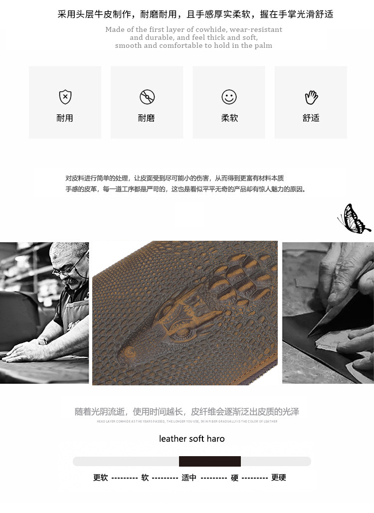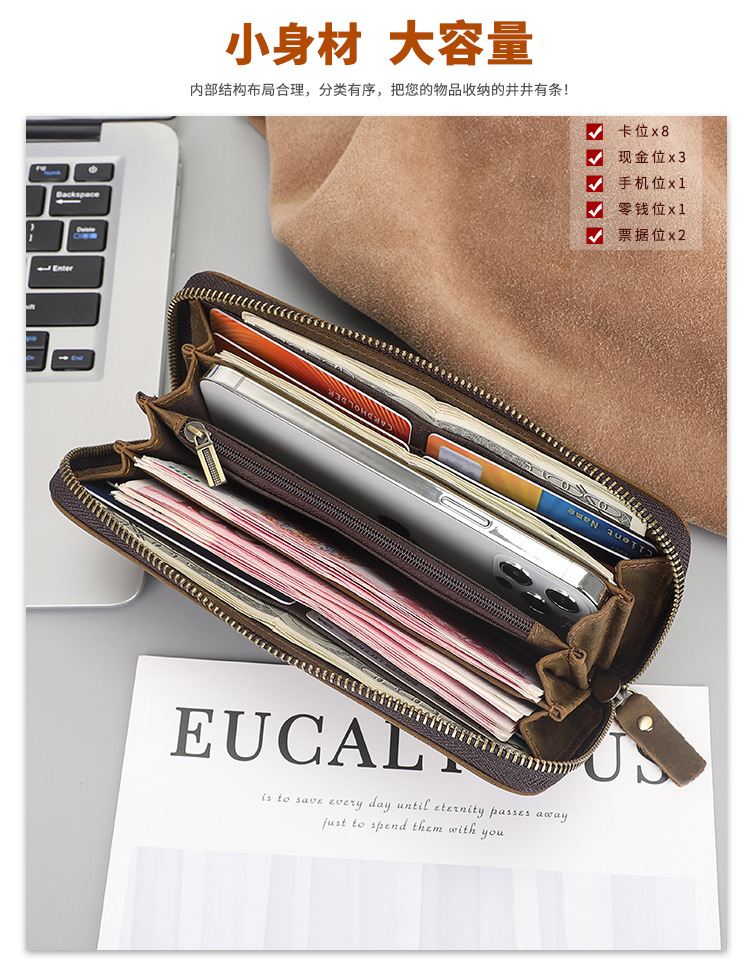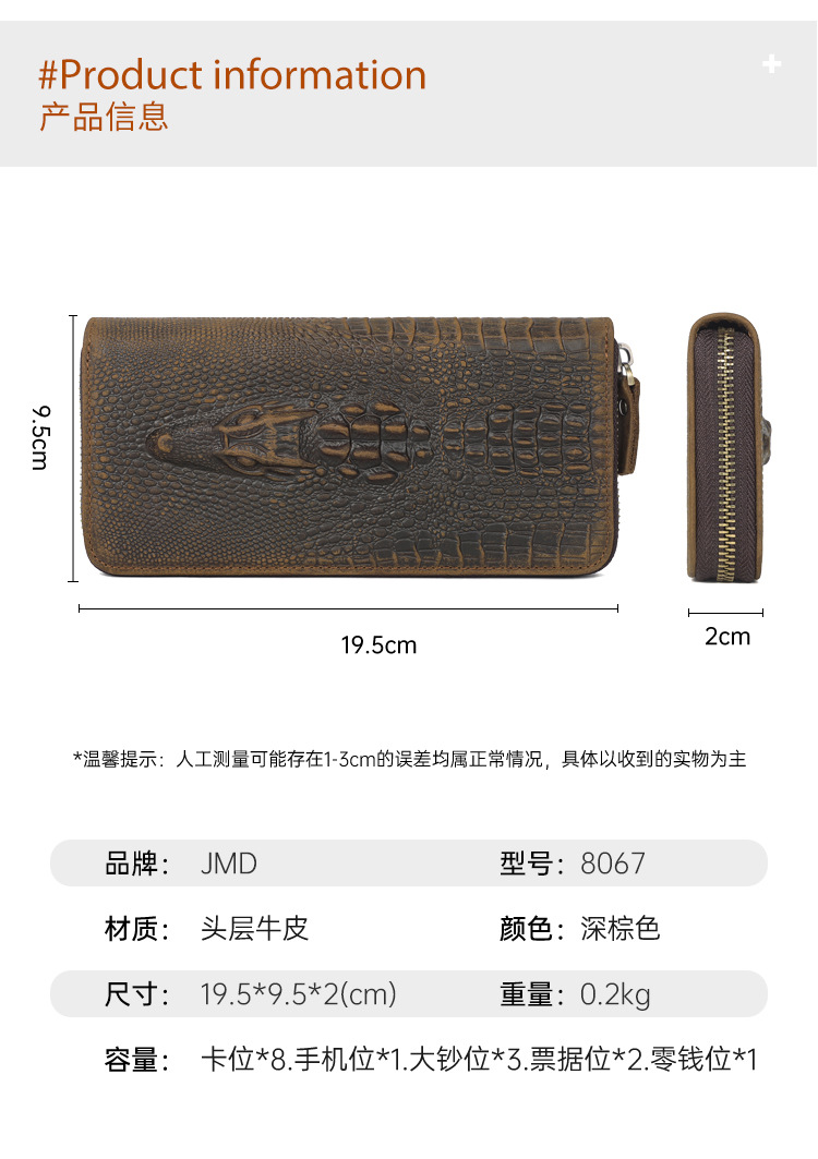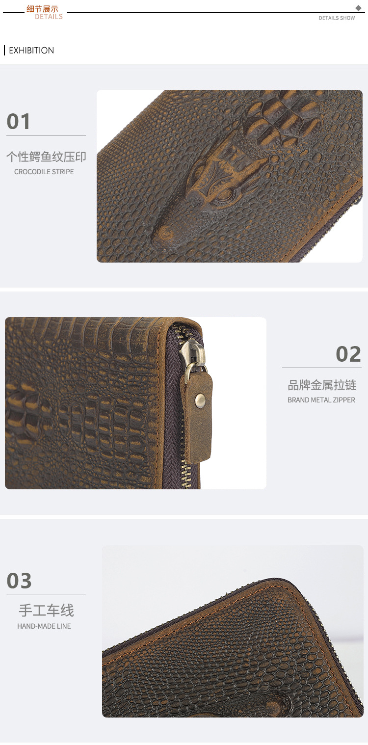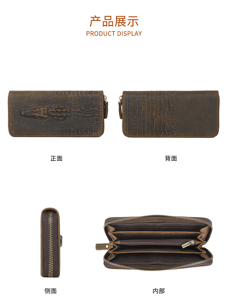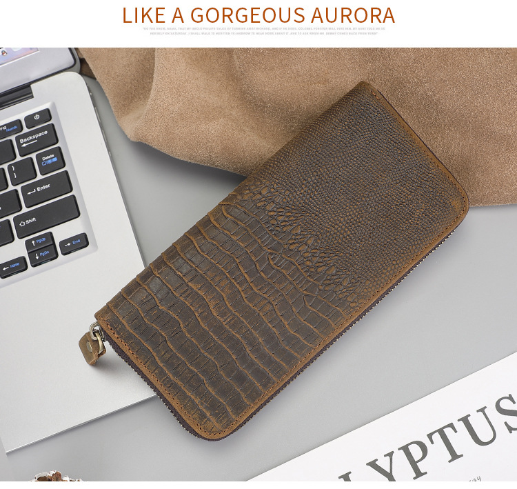 Chiếc ví nam này có kiểu dáng dài, bề mặt da được xử lý tạo vết nhăn mềm mại và in nổi họa tiết da cá sấu đầy ấn tượng. Sản phẩm sử dụng chất liệu da thật tự nhiên, bên trong có nhiều ngăn đựng thẻ và tiền mặt, cùng một ngăn kéo khóa riêng biệt rất tiện lợi. Bạn có thể dùng để đựng các loại thẻ, giấy tờ và tiền mặt một cách gọn gàng. Chỉ cần mở khóa kéo là bạn có thể lấy tiền xu hoặc những vật dụng nhỏ một cách dễ dàng. | Tên sản phẩm: Ví Bóp Nam Chất Liệu Da Bò Vân Da Cá Sấu Phục Cổ Cổ Điển - Túi Xách Ví Nam | Mã sản phẩm: A6300 - Giá: 830.000đ | Mã nhà sản xuất: SHDER-G03Hình ảnh sản phẩm